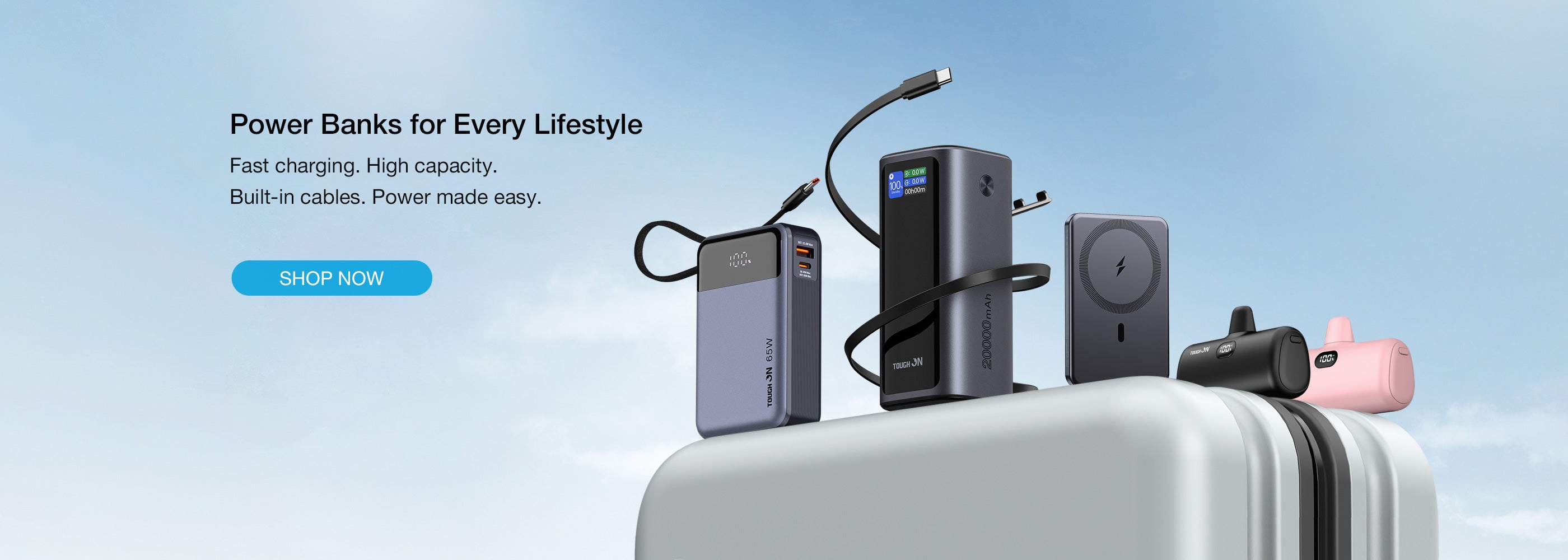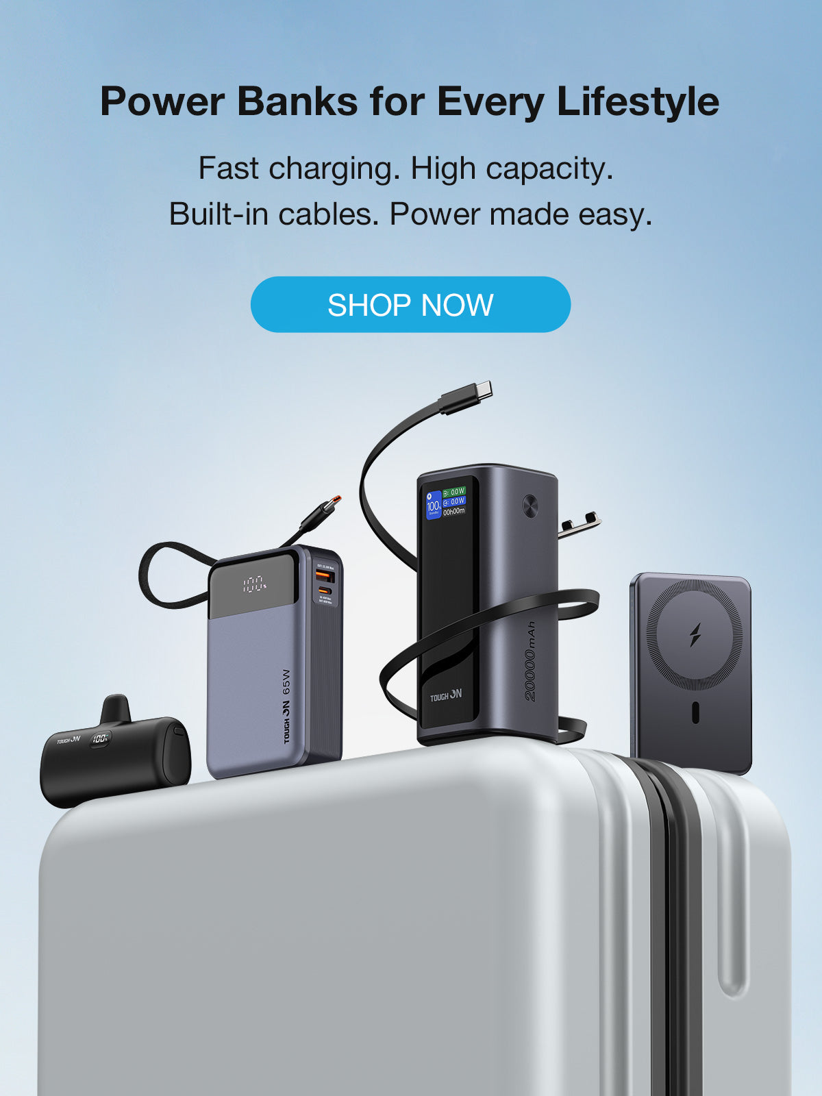 Tough On 65W 20000mAh Power Bank Built-in USB-C Cable
