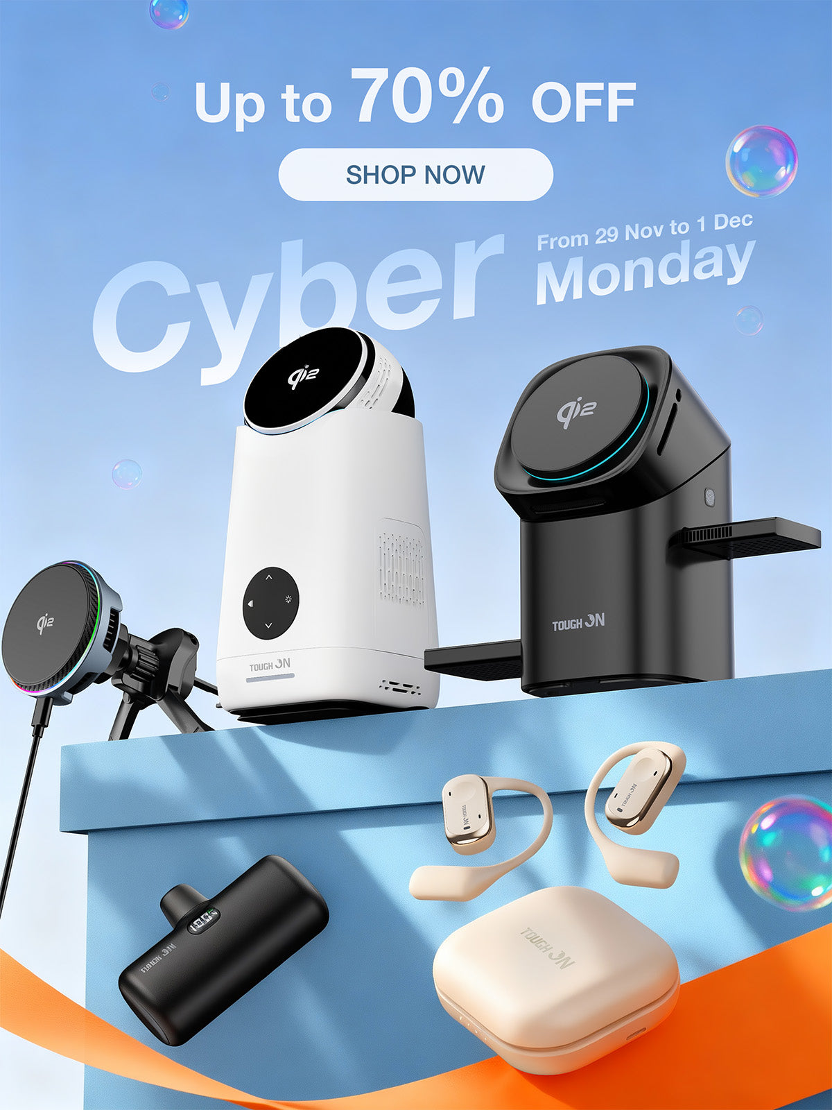 Tough On Qi2 3-in-1 Wireless Charger (15W) and USB-C Charger (30W) Bundle