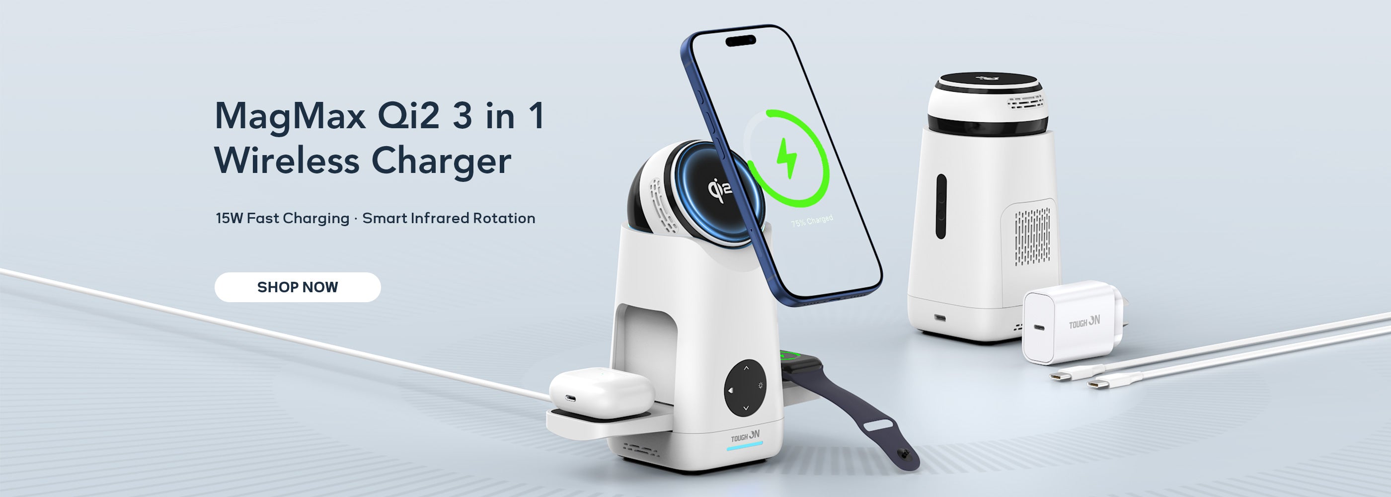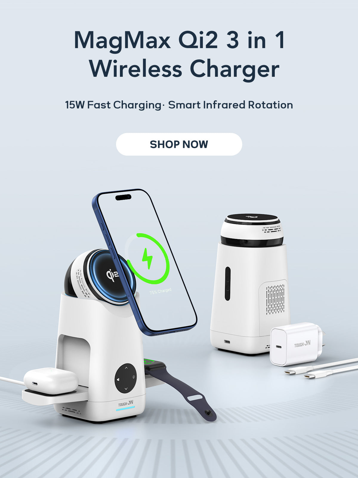 Tough On MagMax Qi2 3-in-1 Wireless Charger with Smart Infrared Sensor Rotation