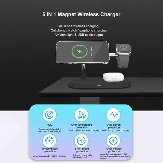 Tough On 5 in 1 Magnetic MagSafe Wireless Charger Stand Dock