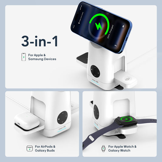MagMax 3-in-1 Qi2 15W Wireless Charging Station for Apple and Samsung Devices