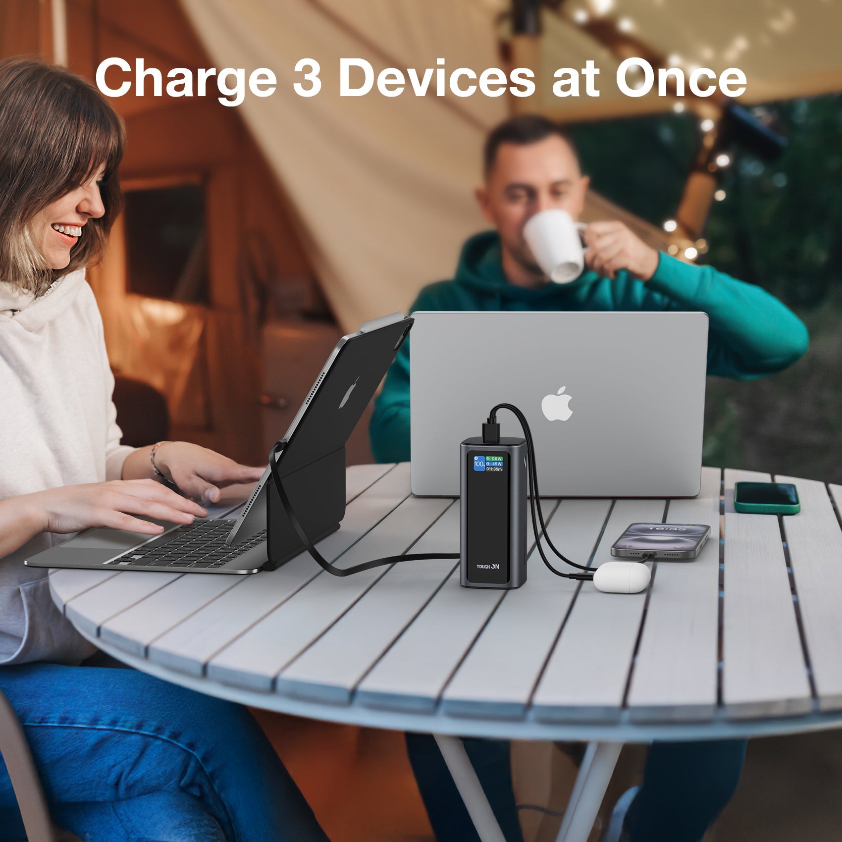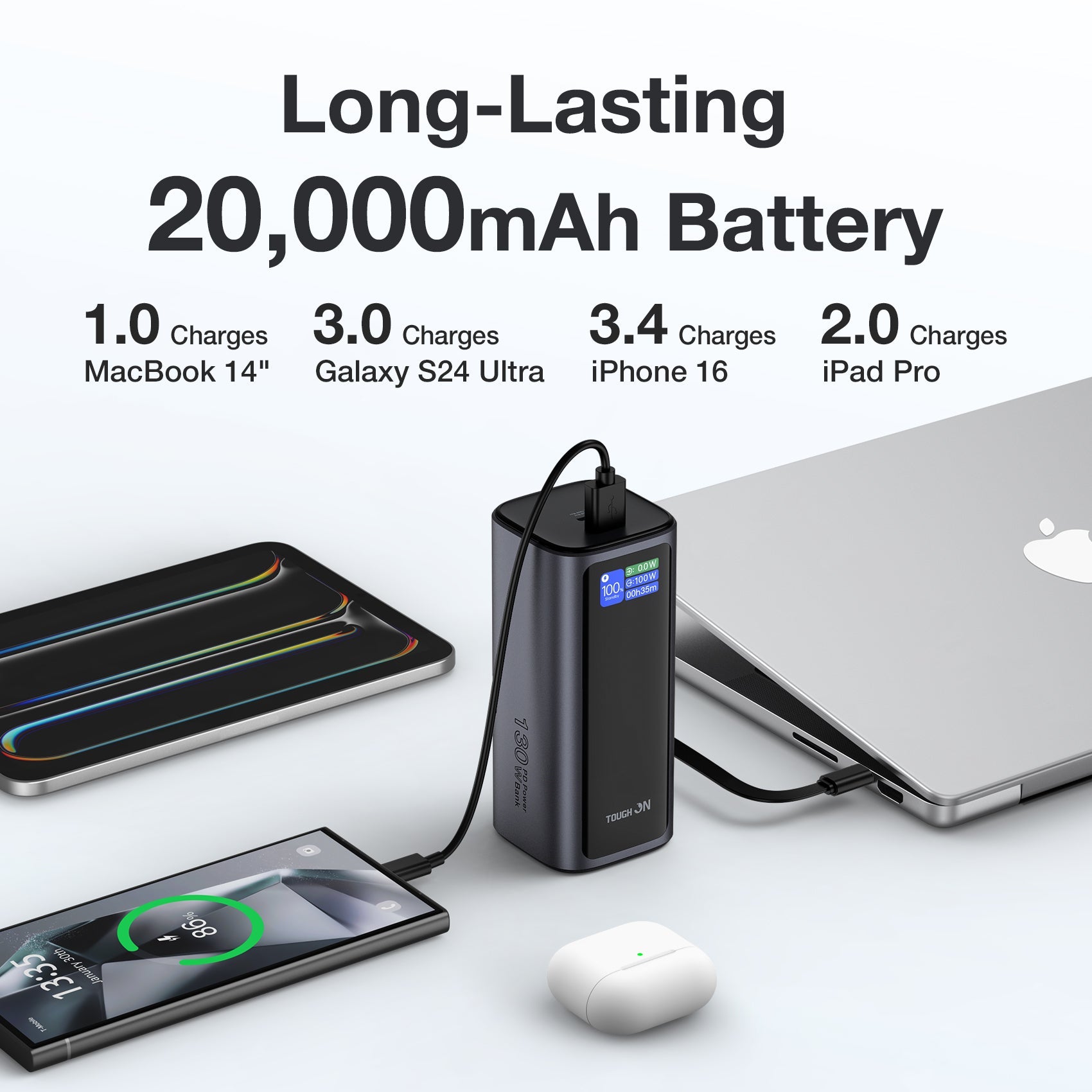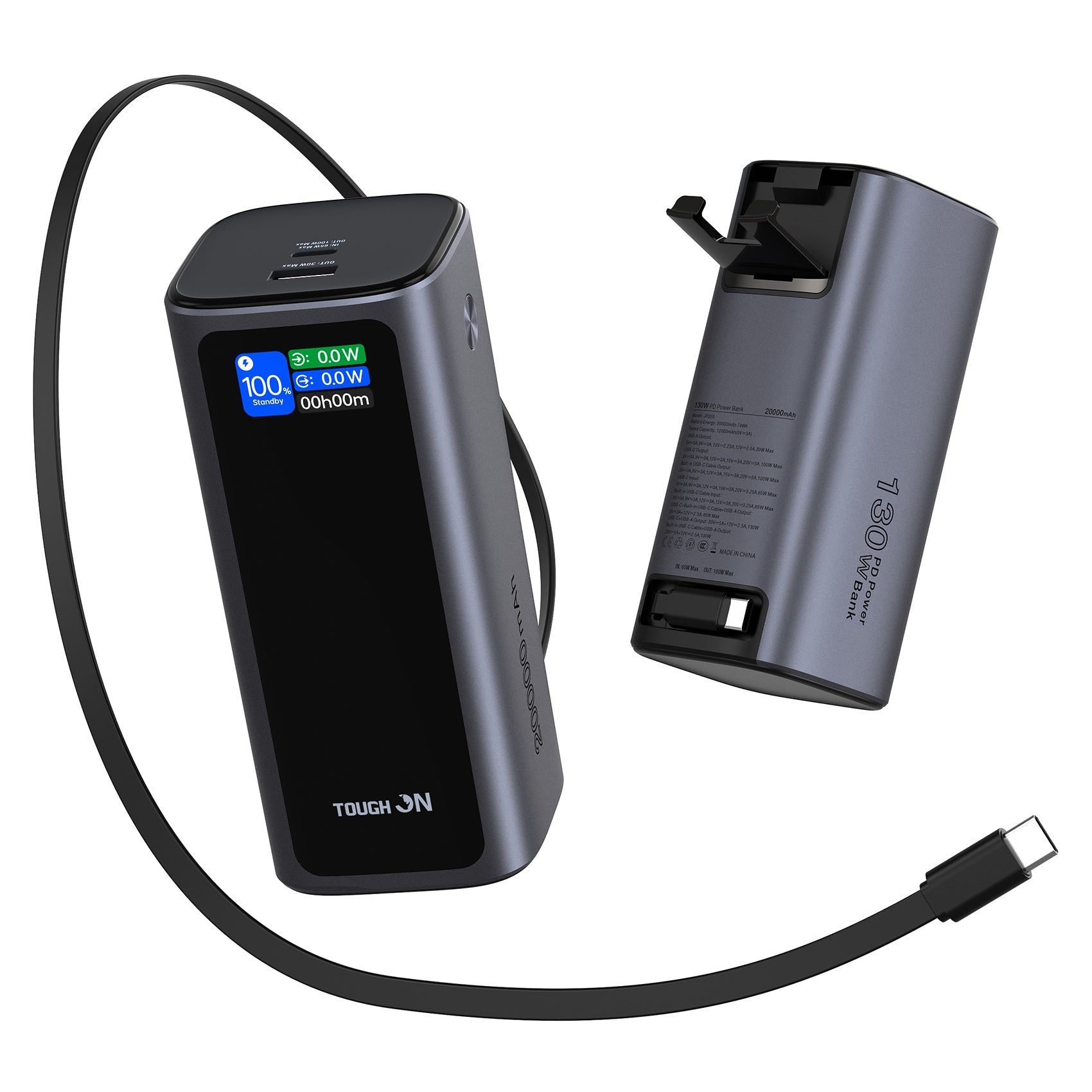 - 1× Tough On 130W Power Bank (20,000mAh, 130W, Built-in Retractable USB-C Cable)