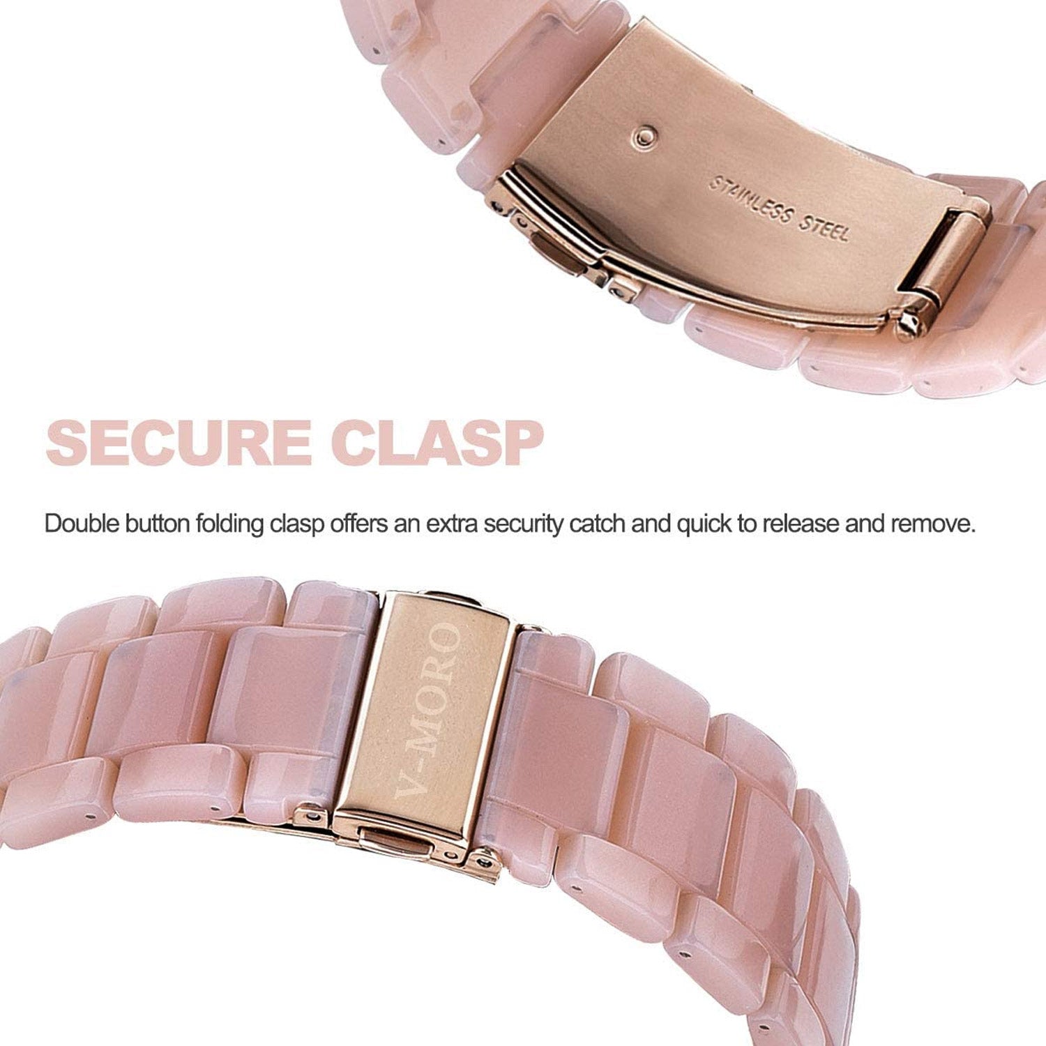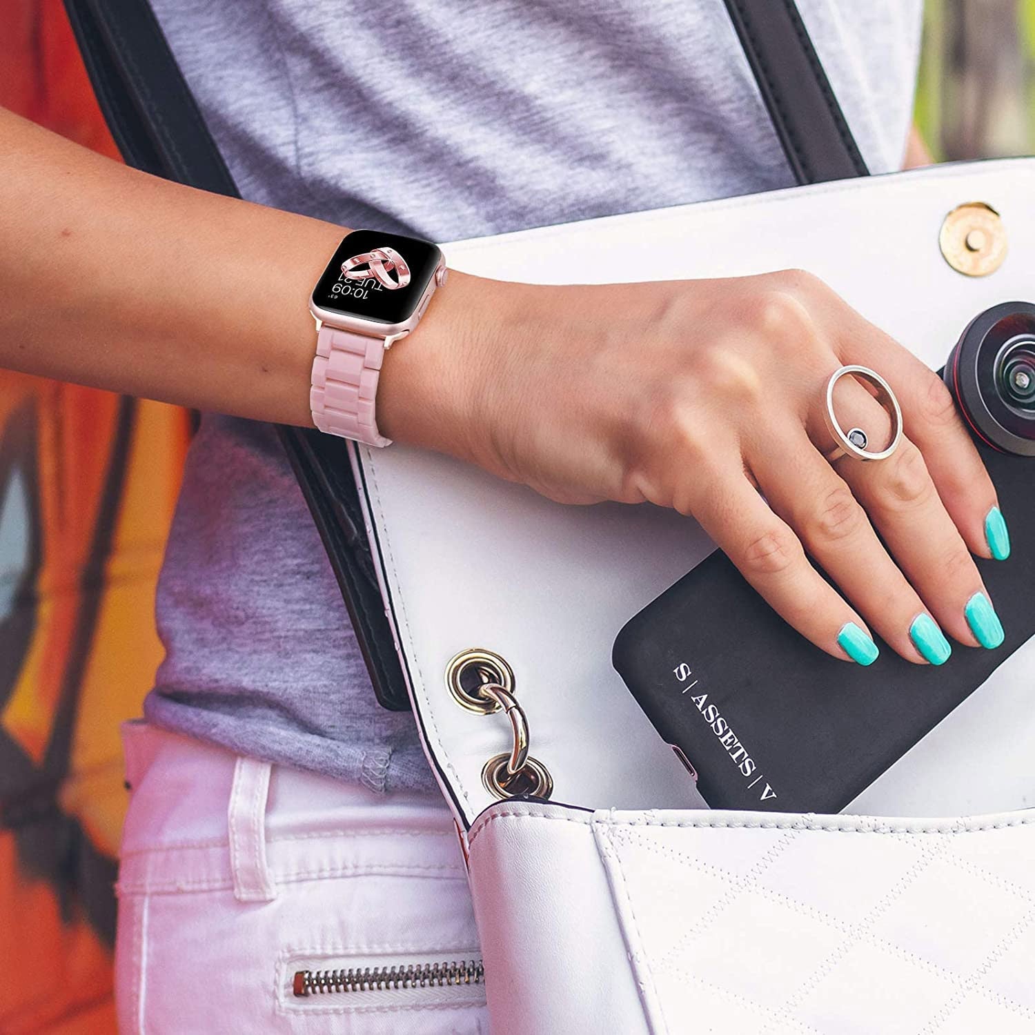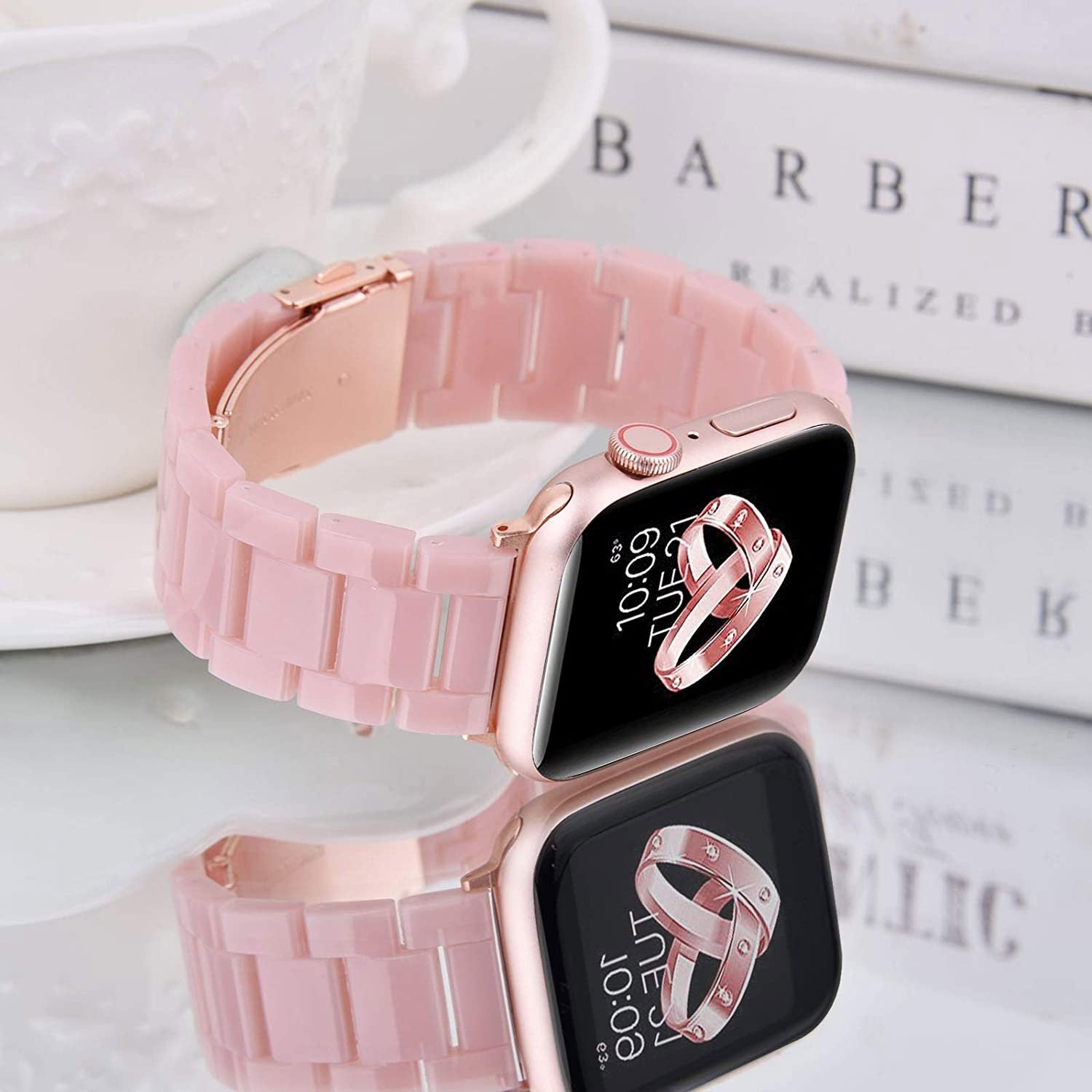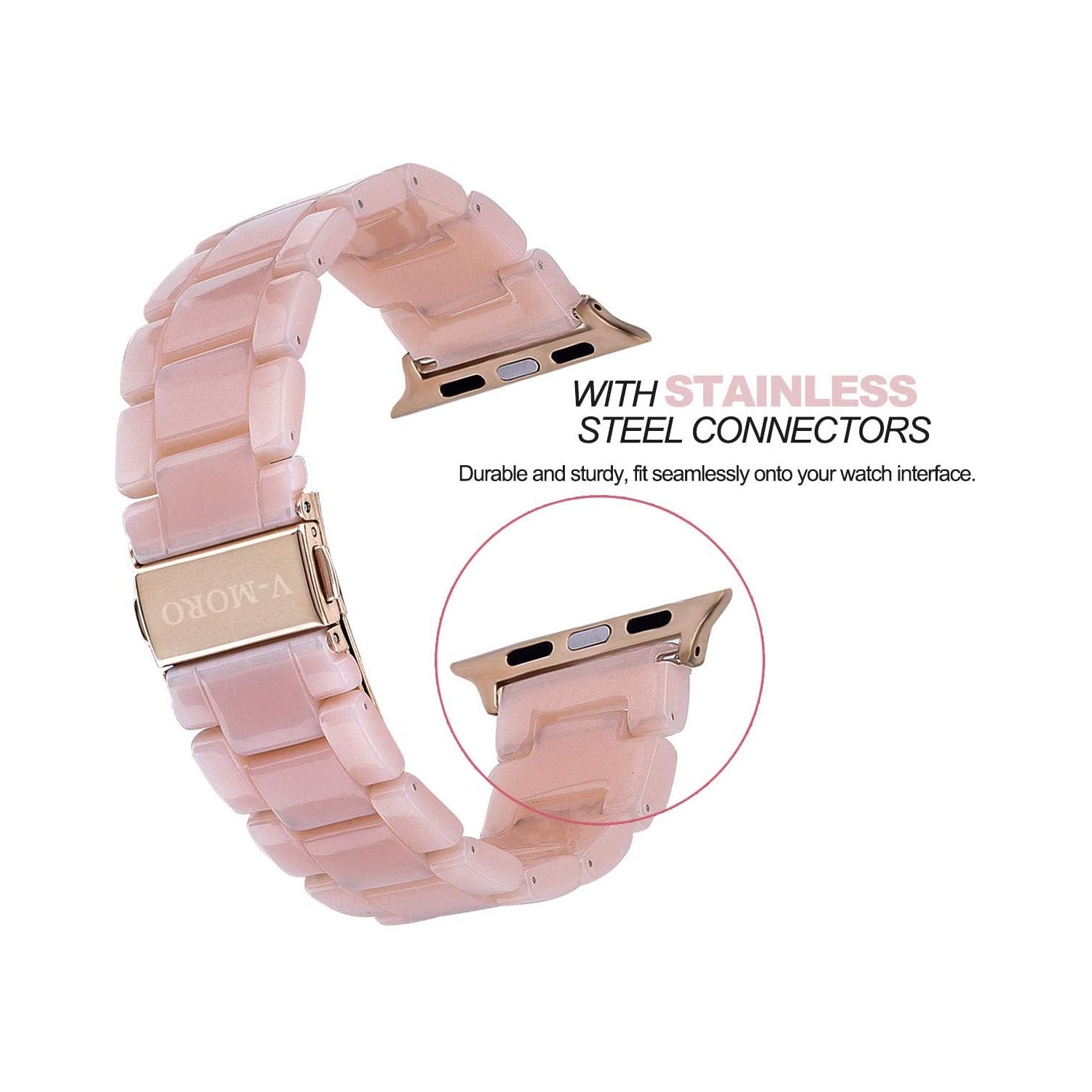- [Stylish & Luxurious] These apple watch bands are made of high-quality resin. It’s well polished, every resin link has smooth edge and face, very comfortable to wear. And the resin bands looks more stylish and luxurious.