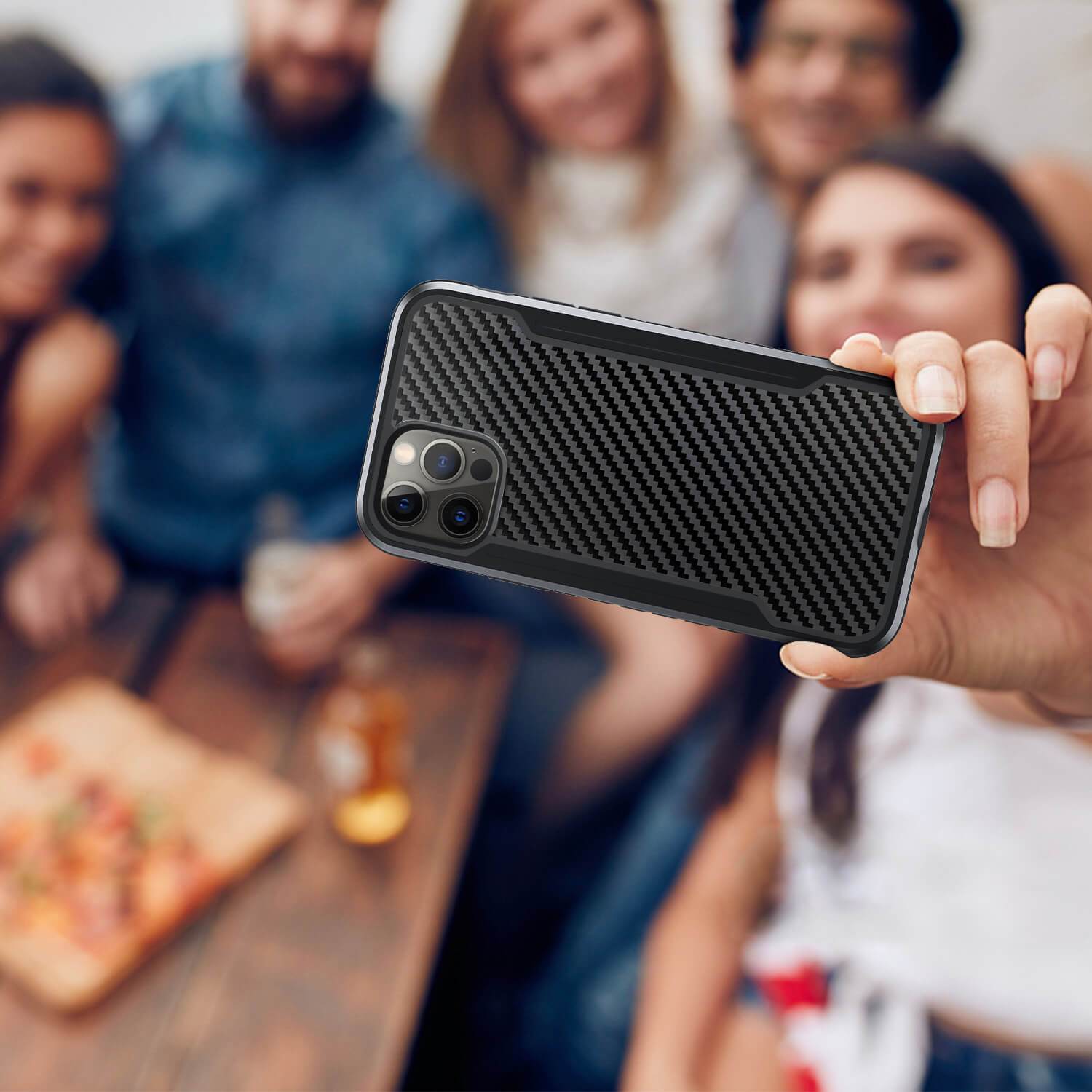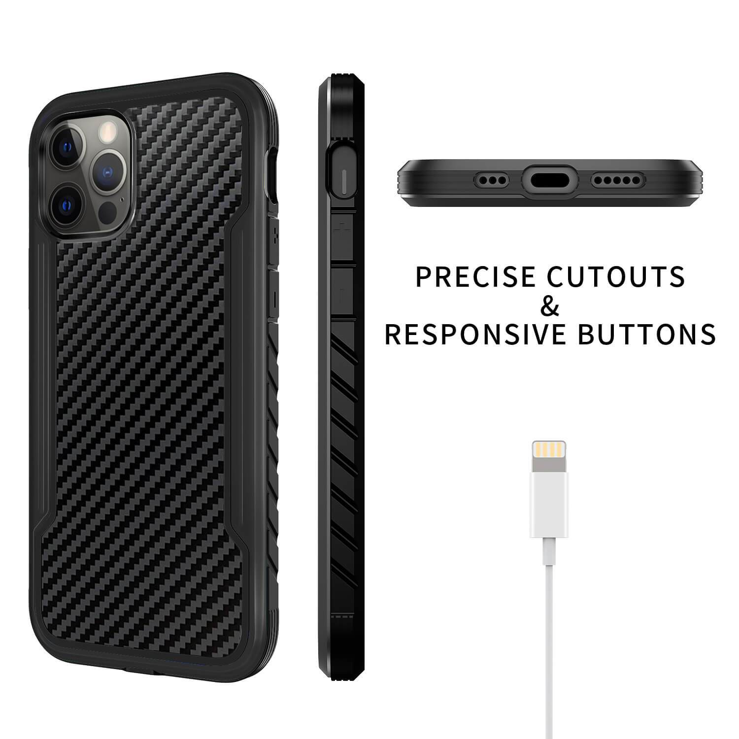 Tough On iPhone 12 / iPhone 12 Pro Case Iron Shield Carbon Fiber Black