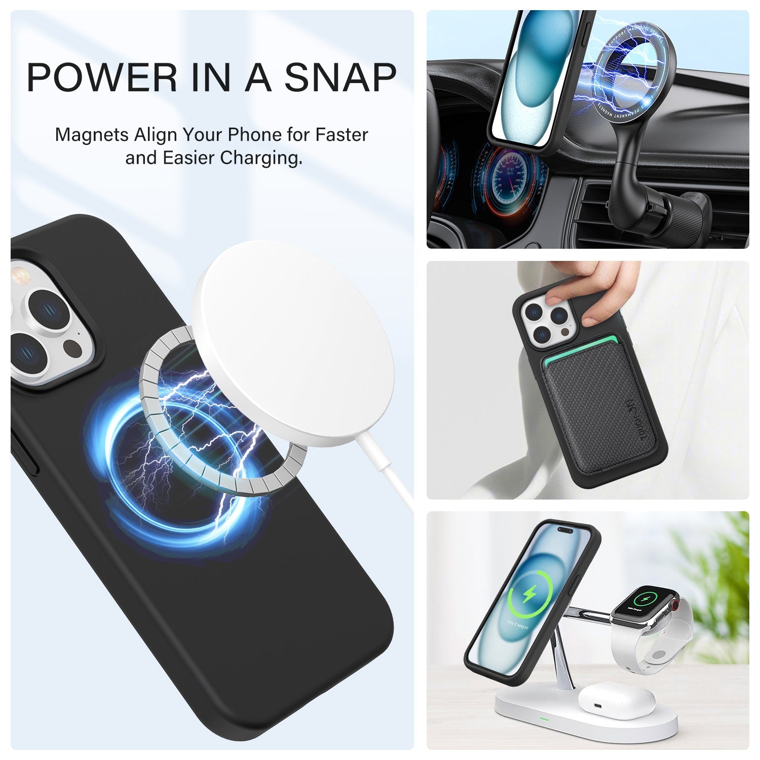 - Additionally, the case has a built-in magnetic ring that aligns perfectly and securely with MagSafe chargers, ensuring secure and fast wireless charging.