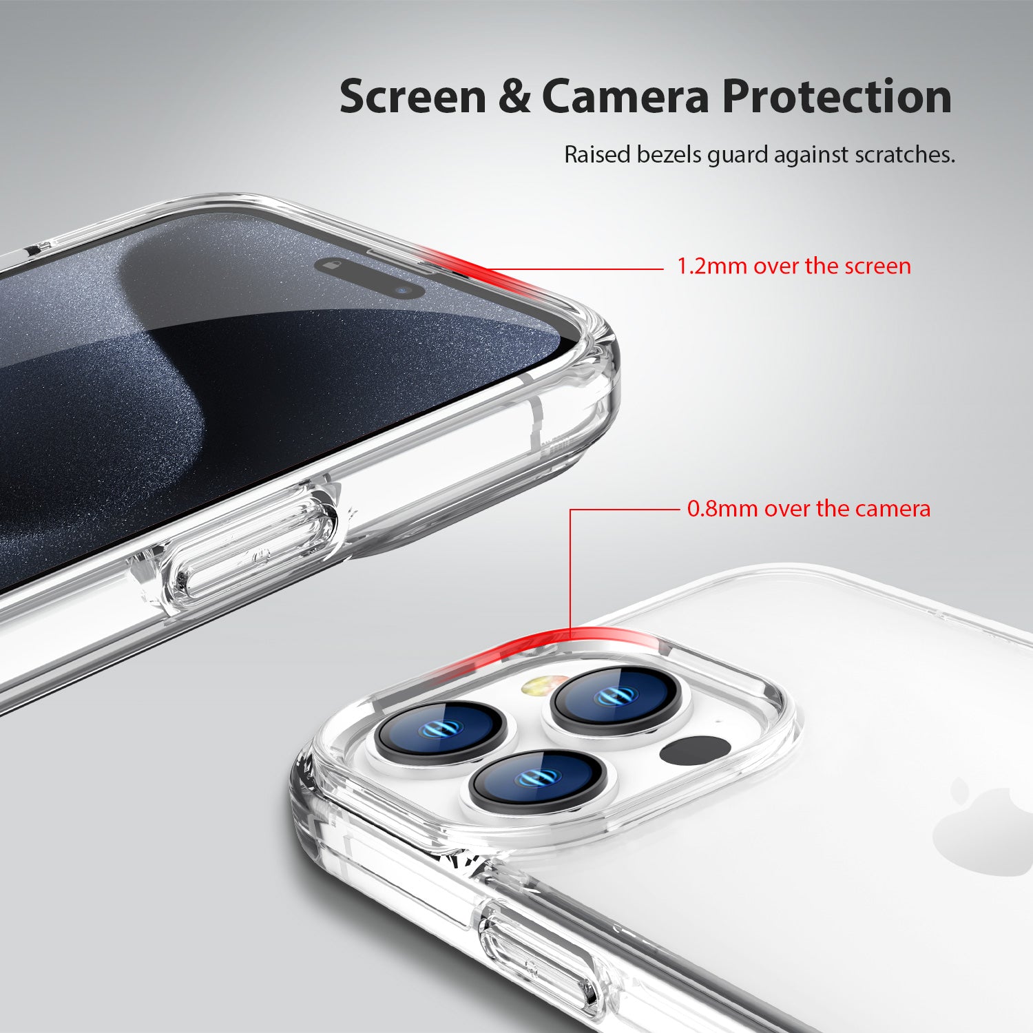 - Raised bezels offer extra protection for screen and camera. Unique shock-absorption design: 4 corners effectively absorb shocks