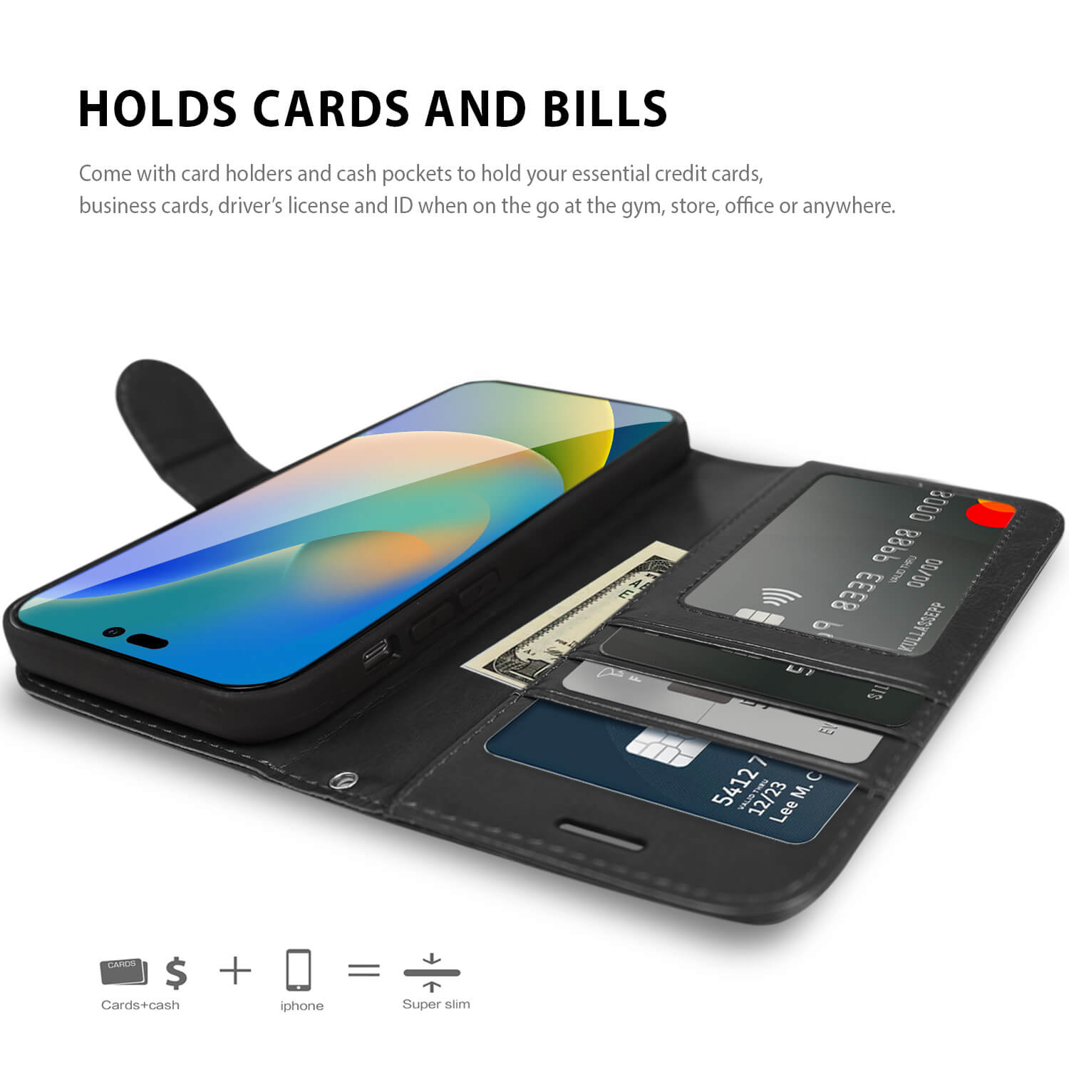 - 2-in-1 Design with Premium Material: This iPhone Wallet Case features three card slots and a full-length pocket for cash and receipts. Crafted from quality leather.