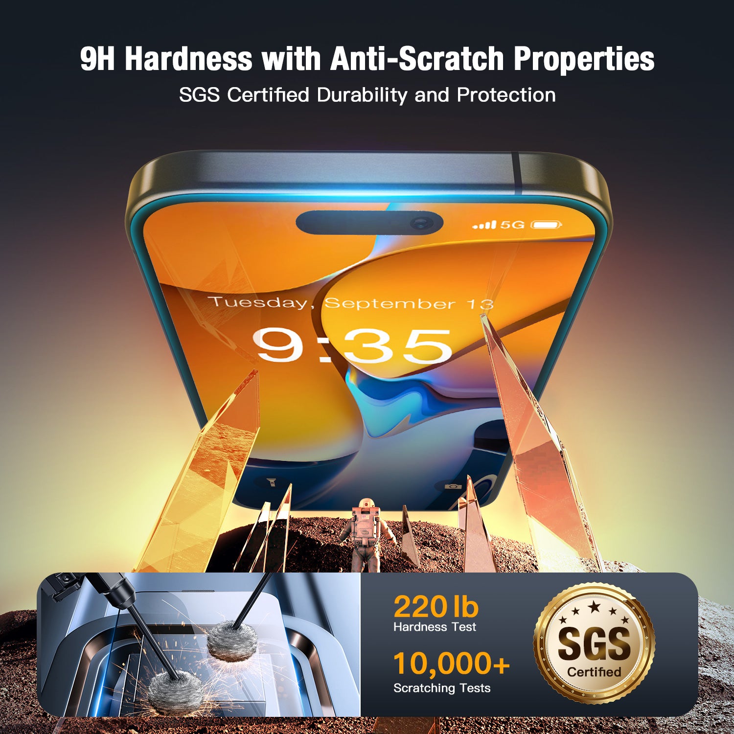 Tough On iPhone 15 Pro Tempered Glass Screen Protector 2 Pack w/ Installation Kit