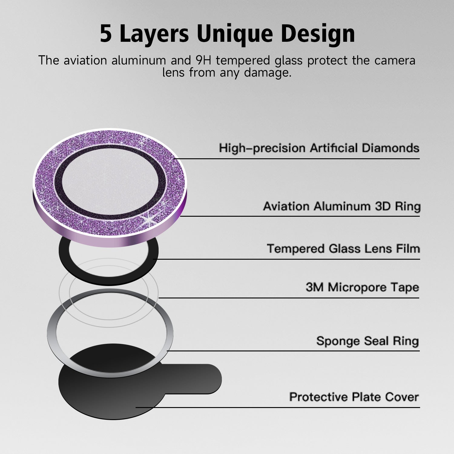 - The aviation aluminum metal ring and 9H tempered glass camera protector protect your camera lens from damage and scratches. The seal ring is designed to prevent dust and water. This secure protection resists shock, drop-offs, or significant impacts on your camera, providing you with peace of mind.
