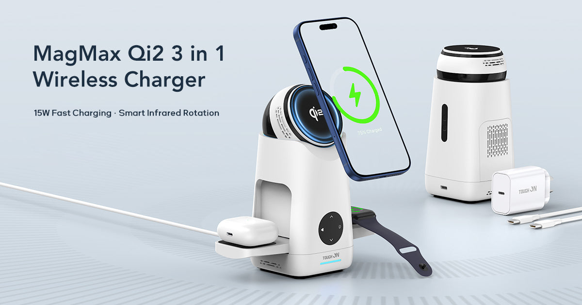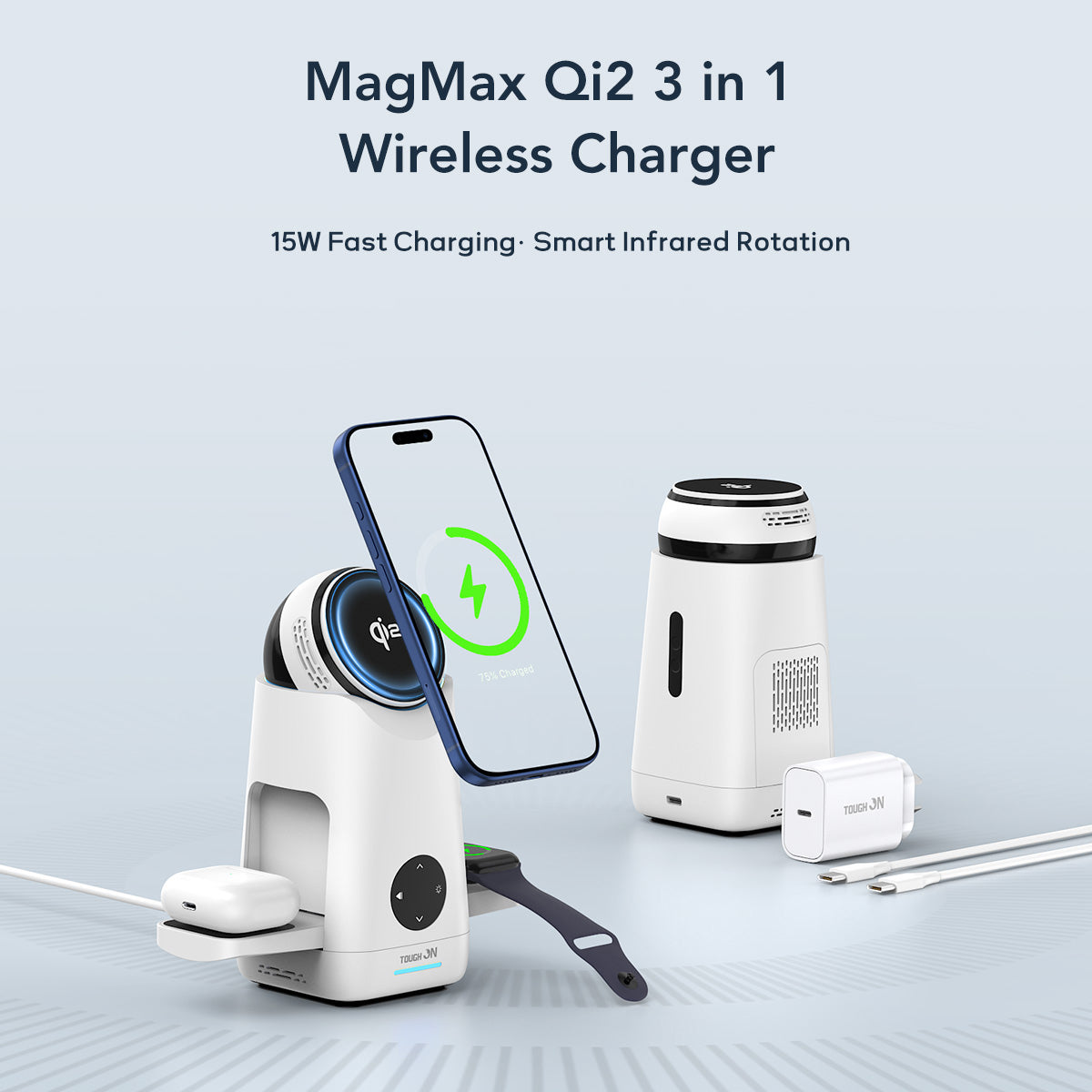 Tough On MagMax Qi2 3-in-1 Wireless Charger with Smart Infrared Sensor Rotation