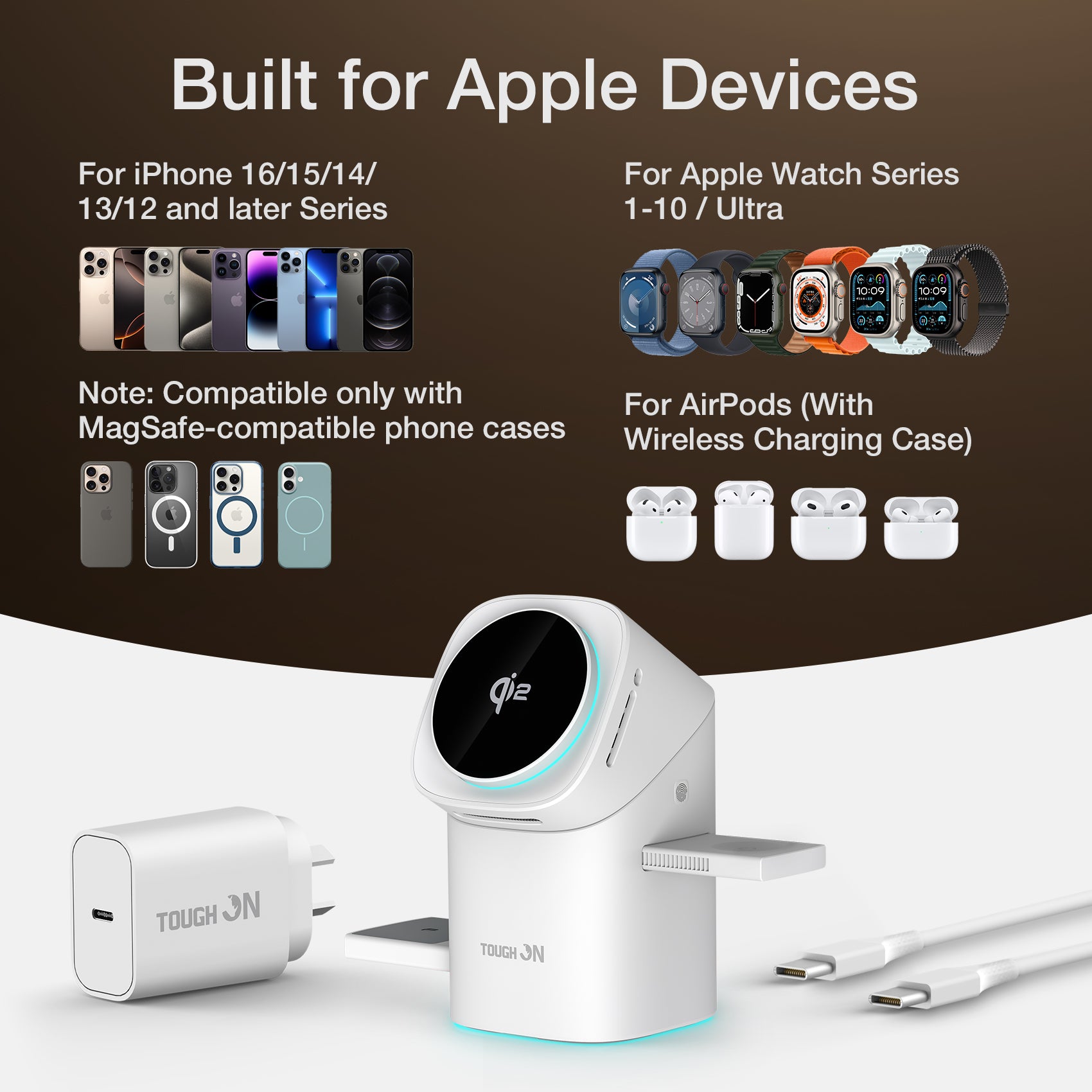Tough On MagPro Qi2 3-in-1 Wireless Charger for Apple iPhone Watch AirPods