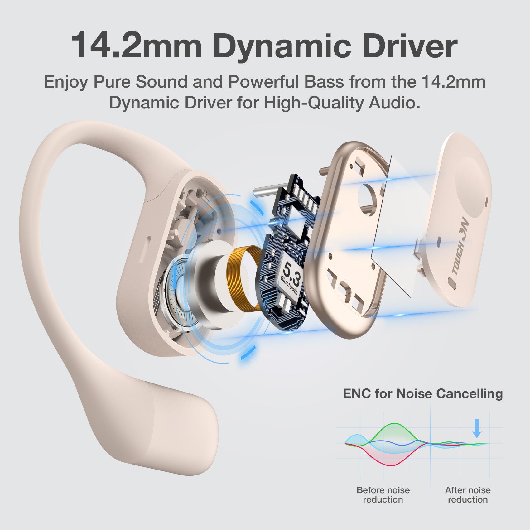 A 14.2mm driver delivers deep bass and clear treble, while ENC noise-canceling mics block 80% of background noise for crystal-clear calls, even in noisy environments.