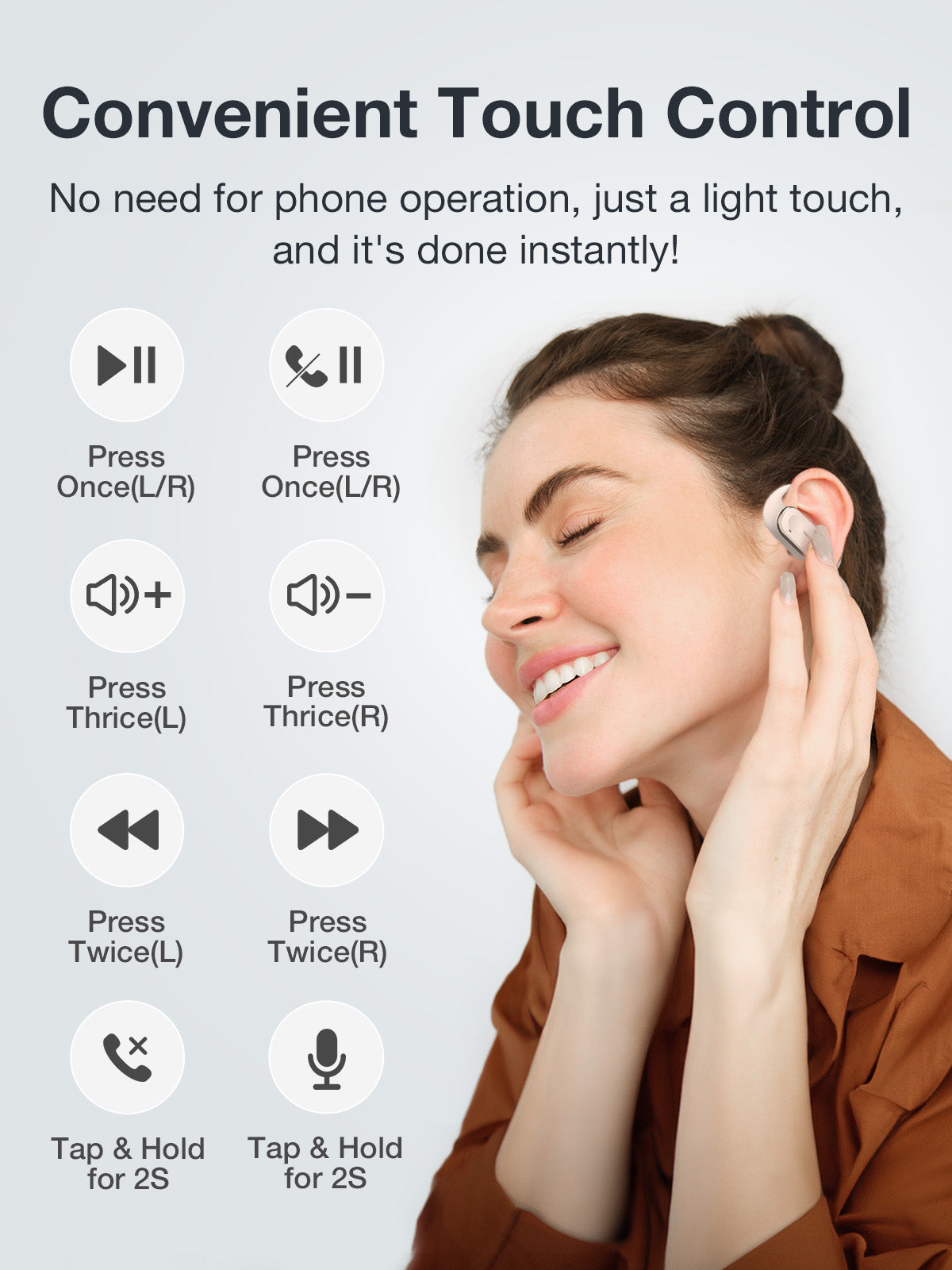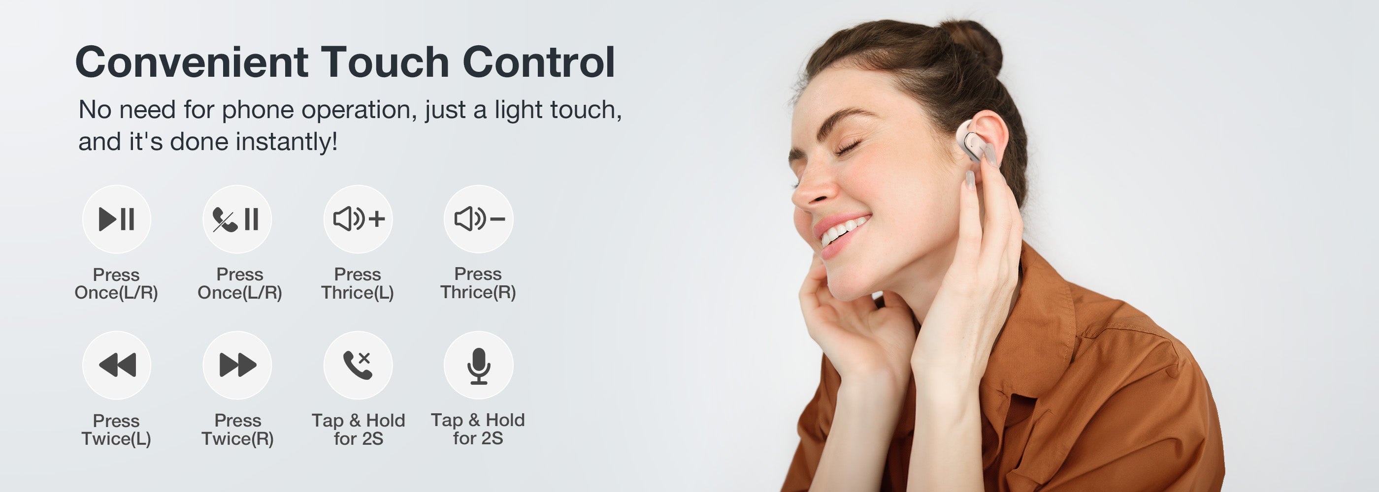 Weighing only 9 grams, these ergonomic earbuds provide a secure fit during workouts. The touch sensor allows easy control for music, calls, and more with a simple tap.