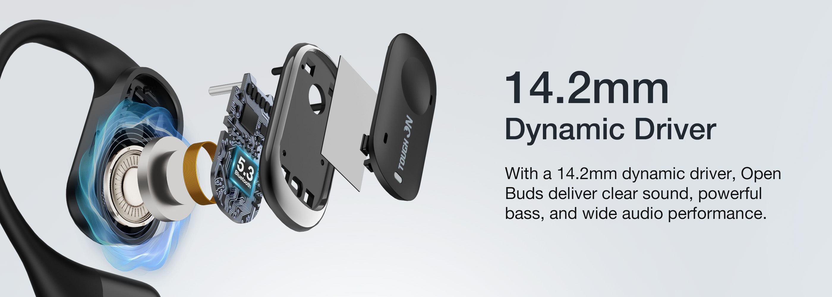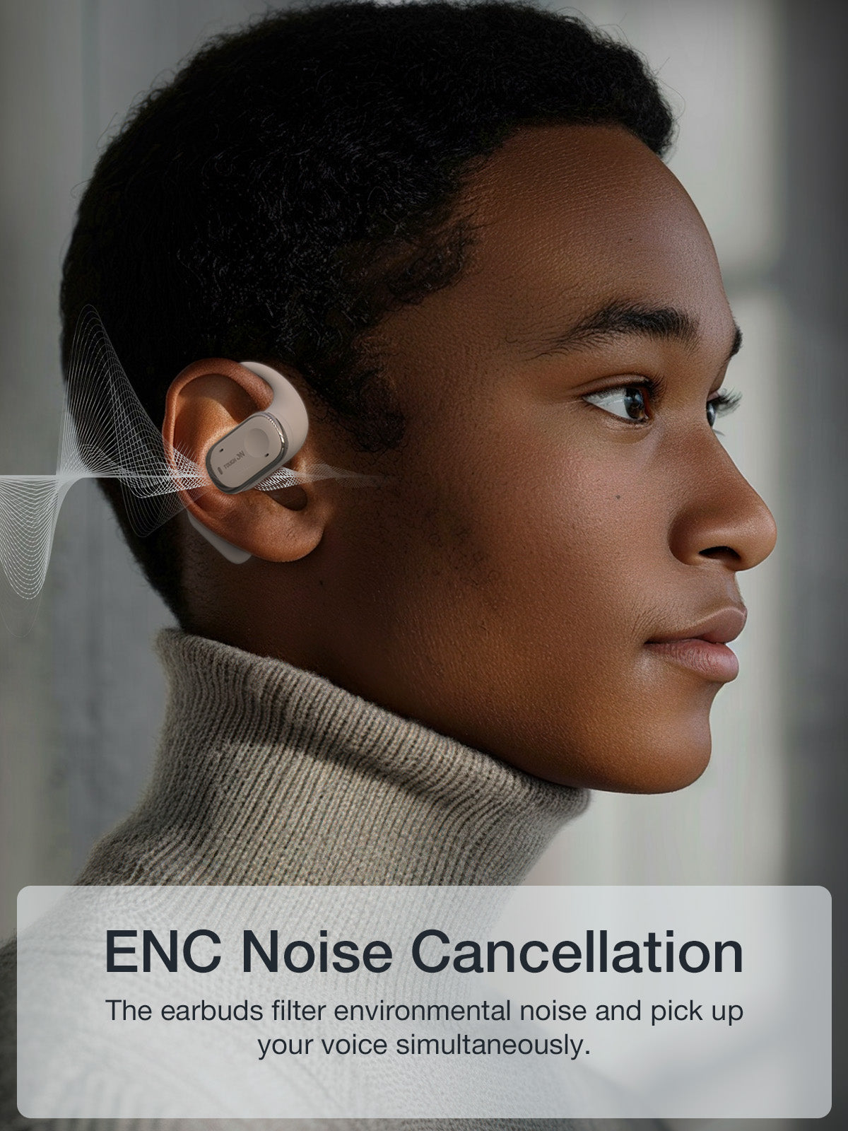 A 14.2mm driver delivers deep bass and clear treble, while ENC noise-canceling mics block 80% of background noise for crystal-clear calls, even in noisy environments.