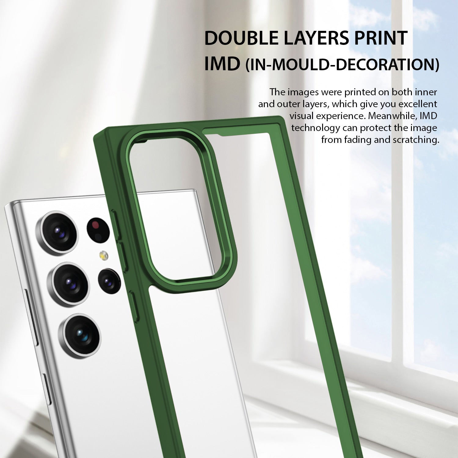 - 360° airbag technology and raised edges protect the screen and camera from scratches and reduce the impact of hitting on hard surfaces.