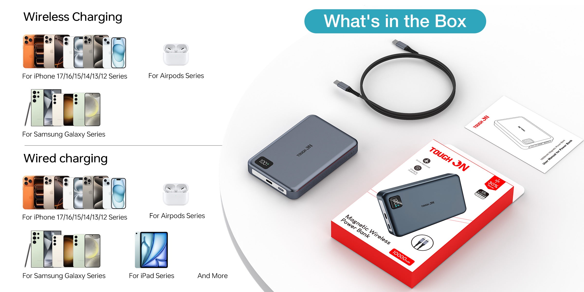 - Tough On 10,000mAh Magnetic Power Bank (10W wireless, 20W wired)
