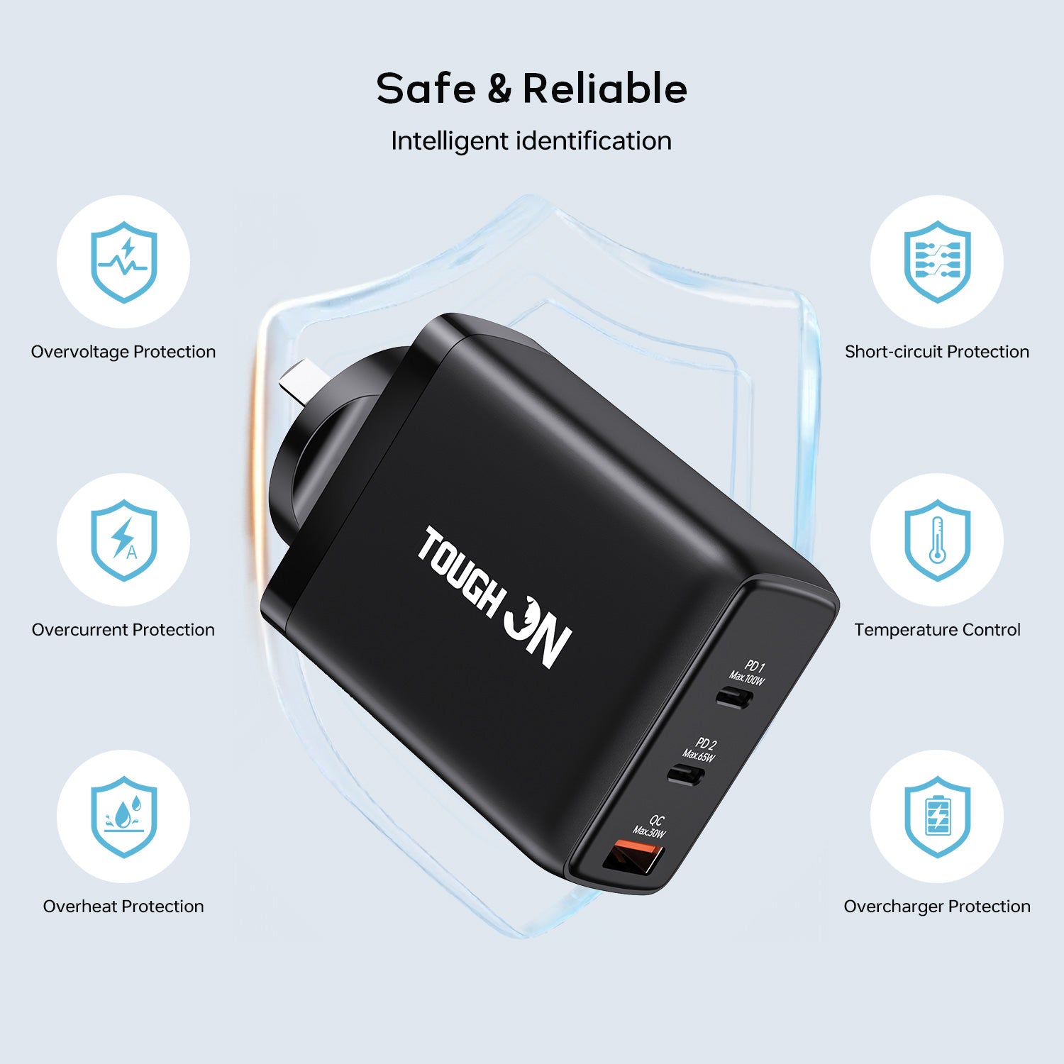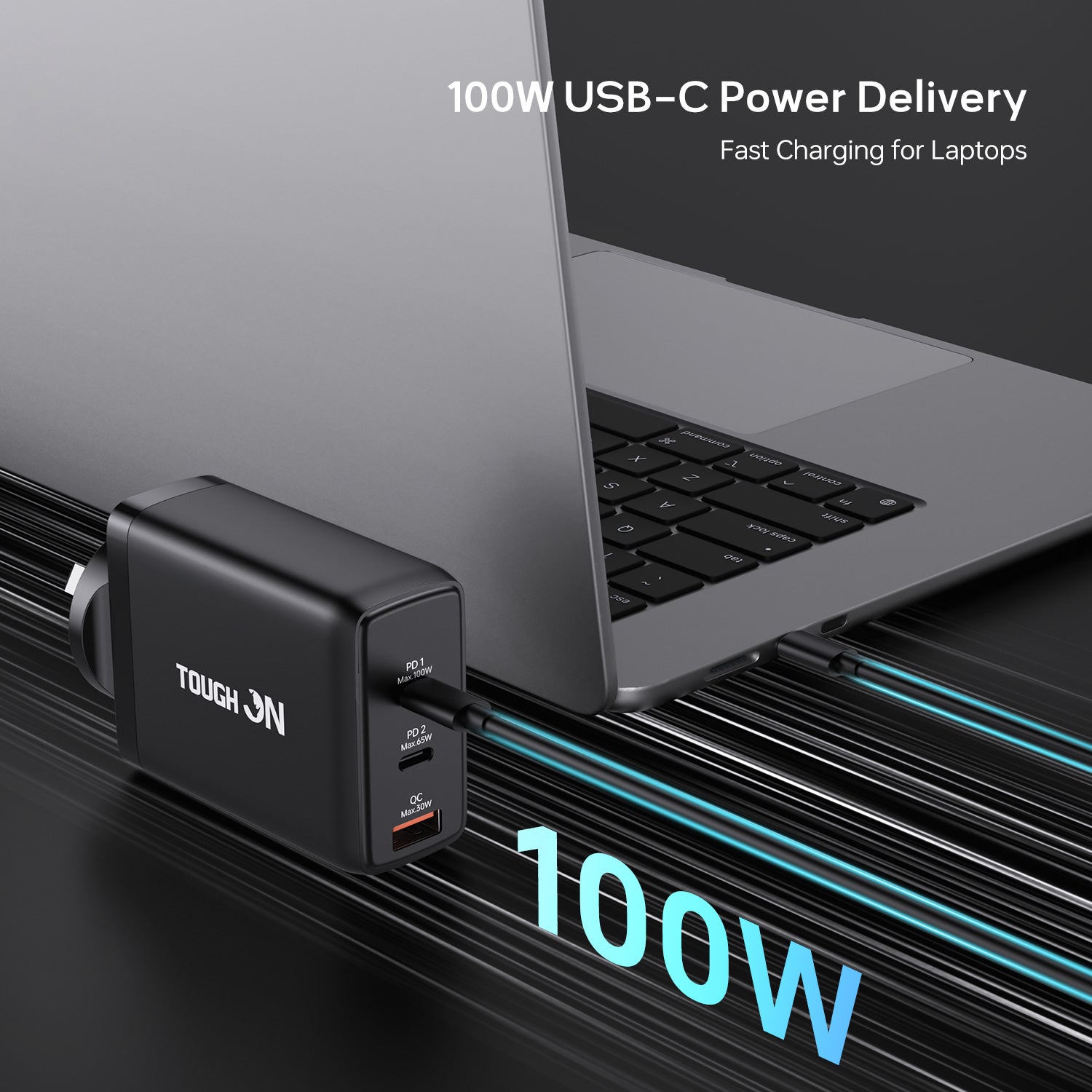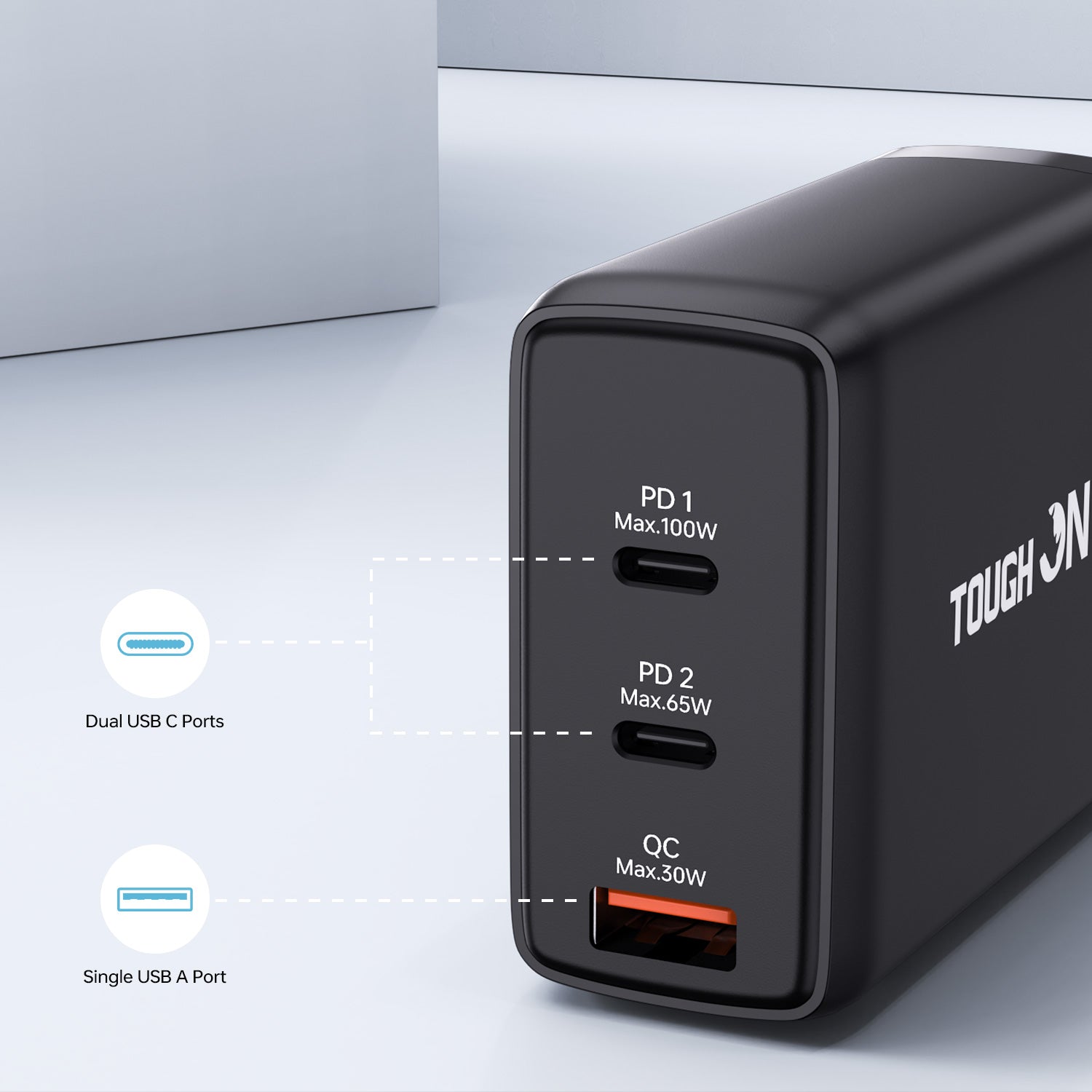 Tough On 100W 3 Port PD & QC 3.0 Fast Gan Wall Charger
