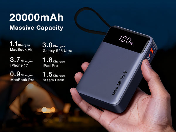 20,000mAh Capacity for All-Day Use