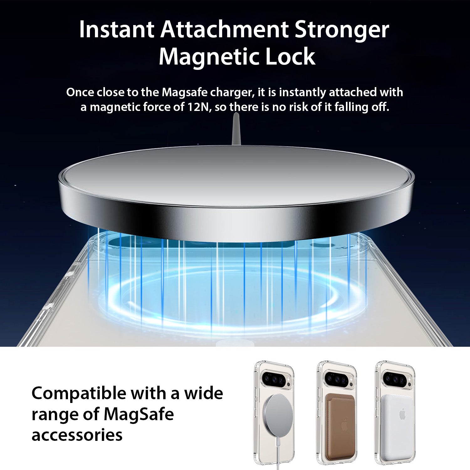 Built-in strong magnets support effortless place-and-go wireless charging and full compatibility with MagSafe accessories. -