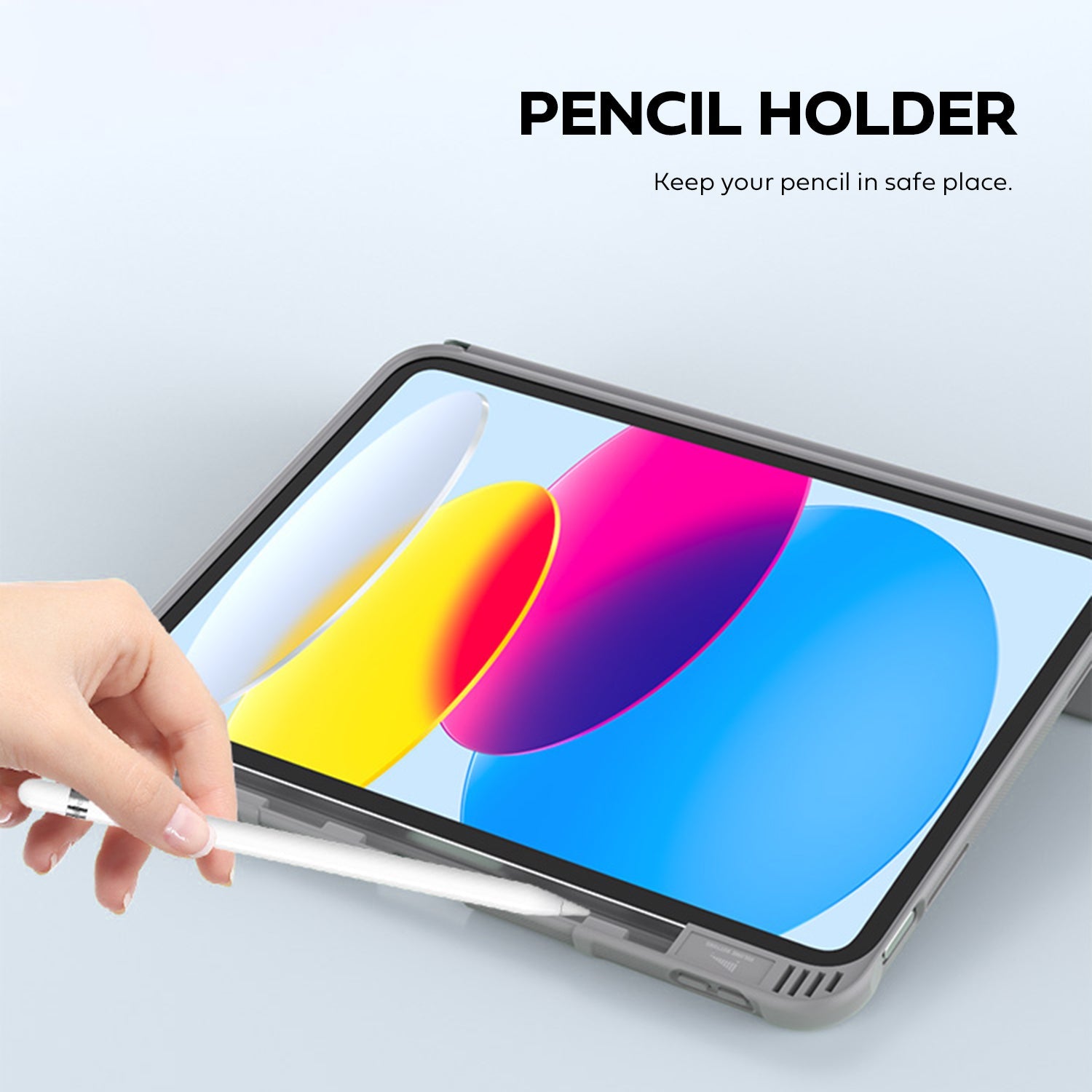 - A built-in pencil slot holds your pencil in place tightly to avoid falling or missing. *Please fold the edge of the front cover before using it.