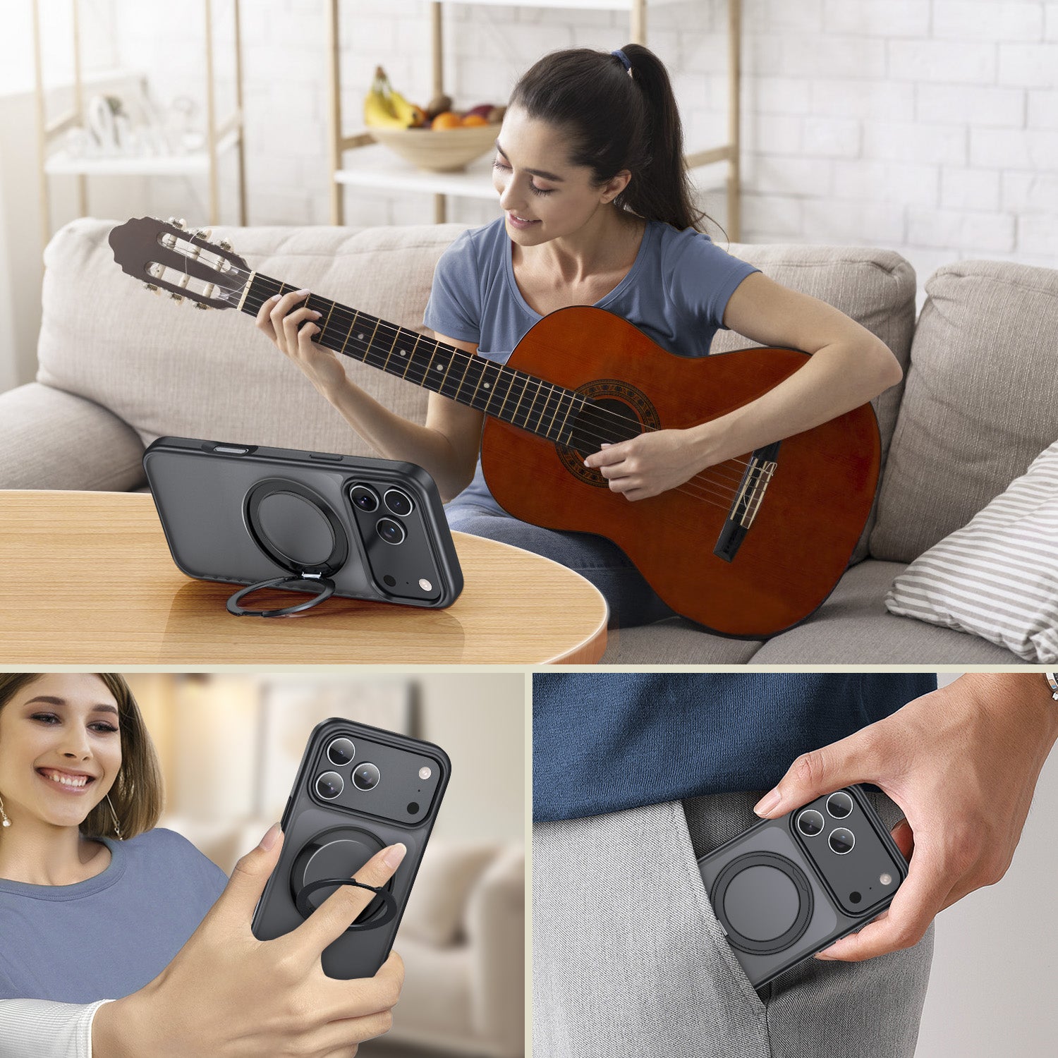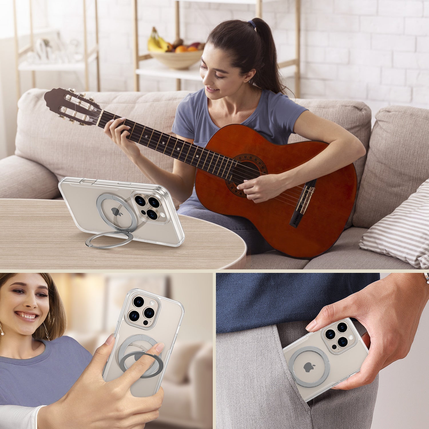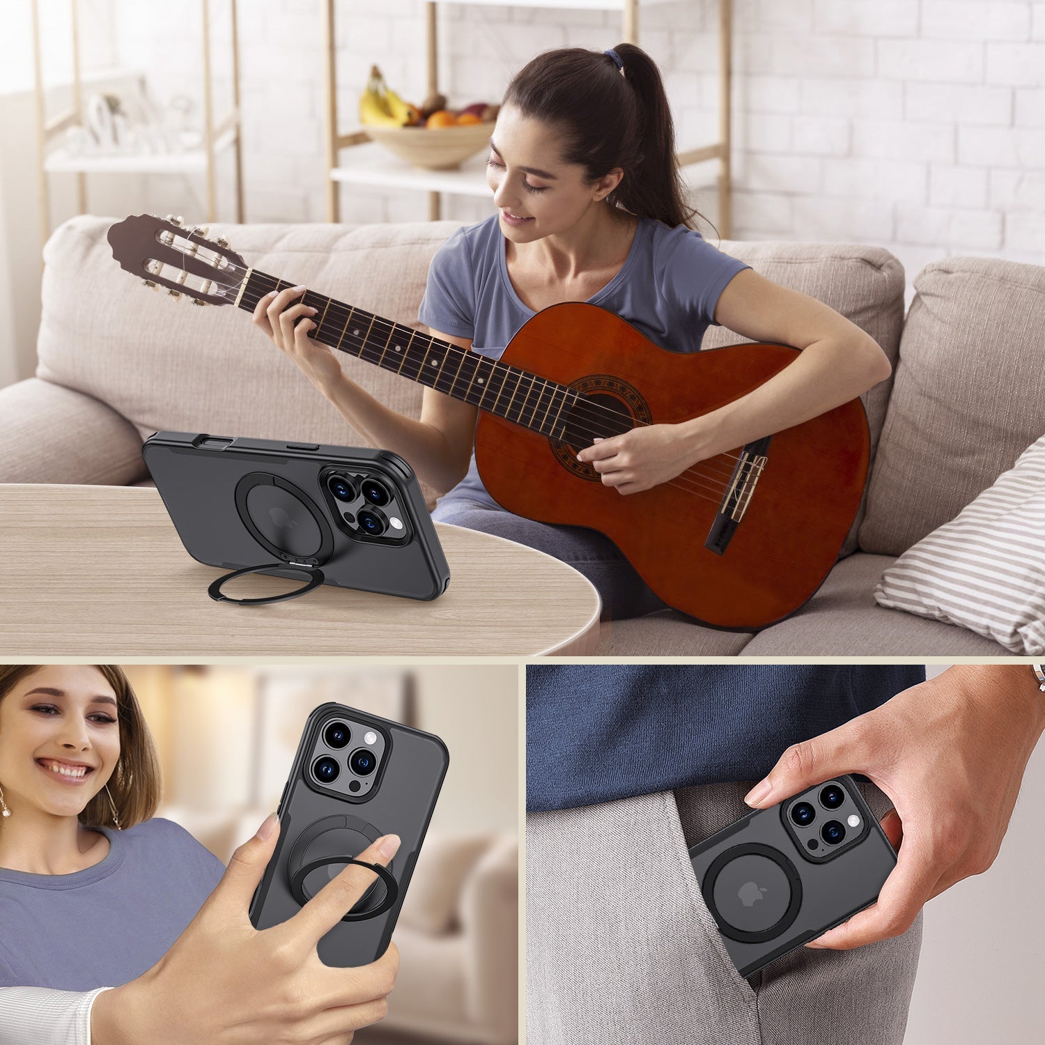 - Rotatable magnetic ring kickstand. You can adjust the kickstand to prop up your phone at the perfect angle on any flat surface, whether you're watching videos or reading.