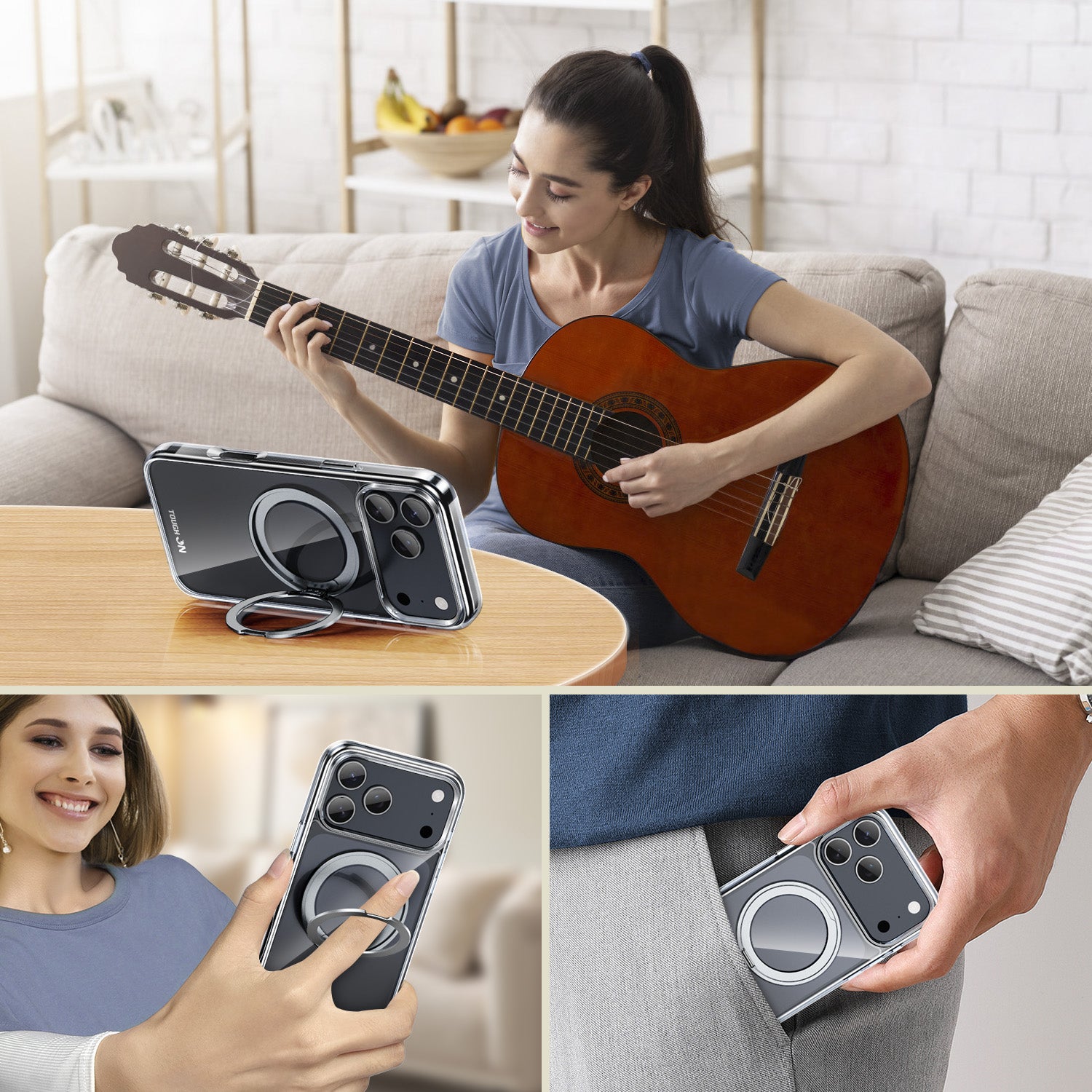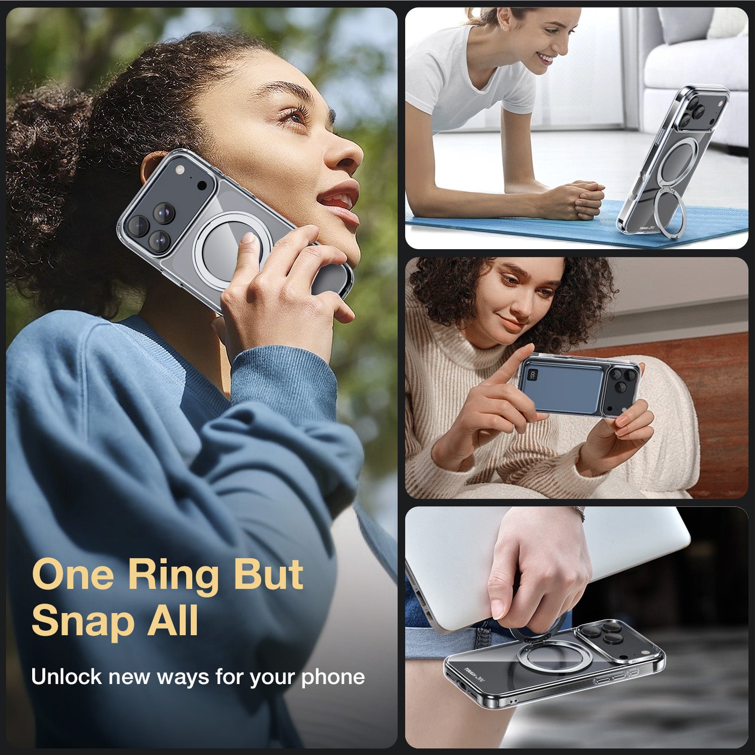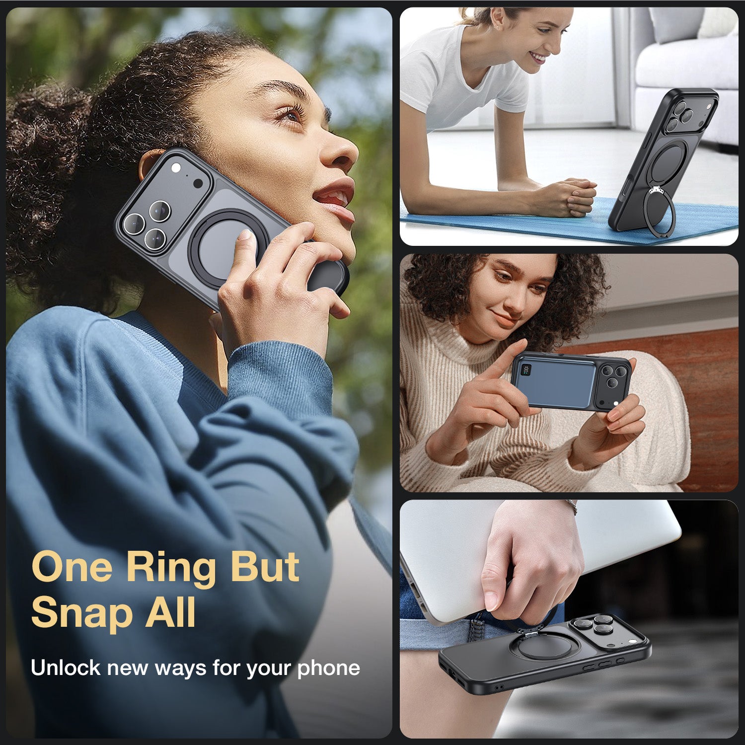 - Rotatable magnetic ring kickstand. You can adjust the kickstand to prop up your phone at the perfect angle on any flat surface, whether you're watching videos or reading.