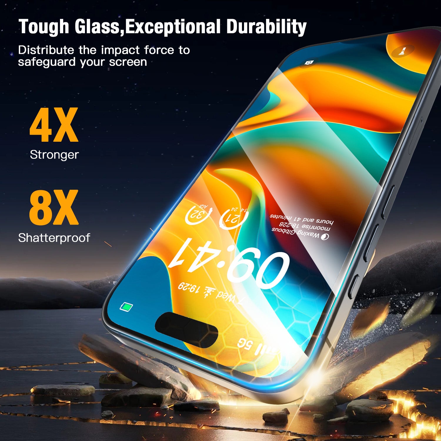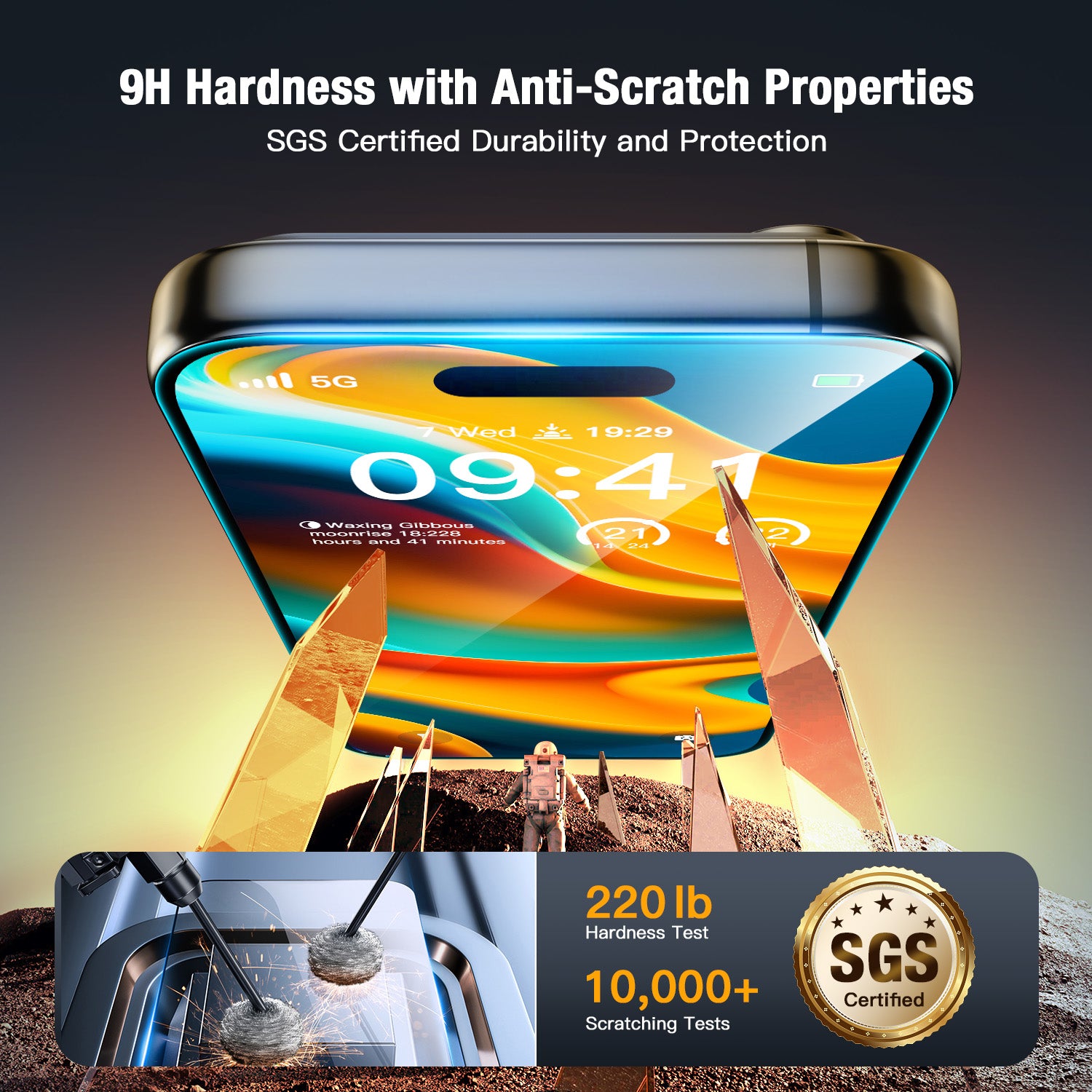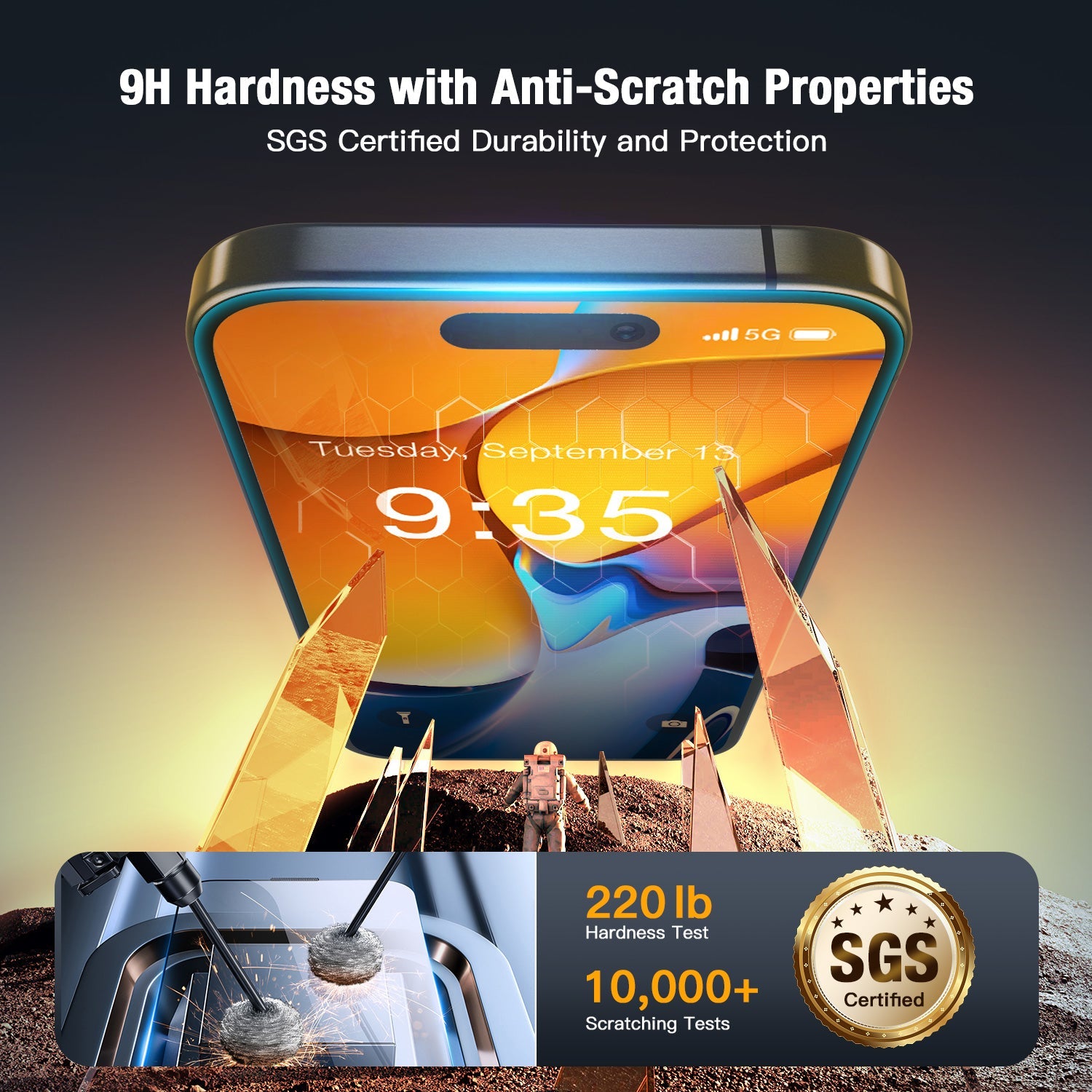 High-strength tempered glass with 9H hardness protects against scratches, scuffs, and drops for long-lasting durability. -
