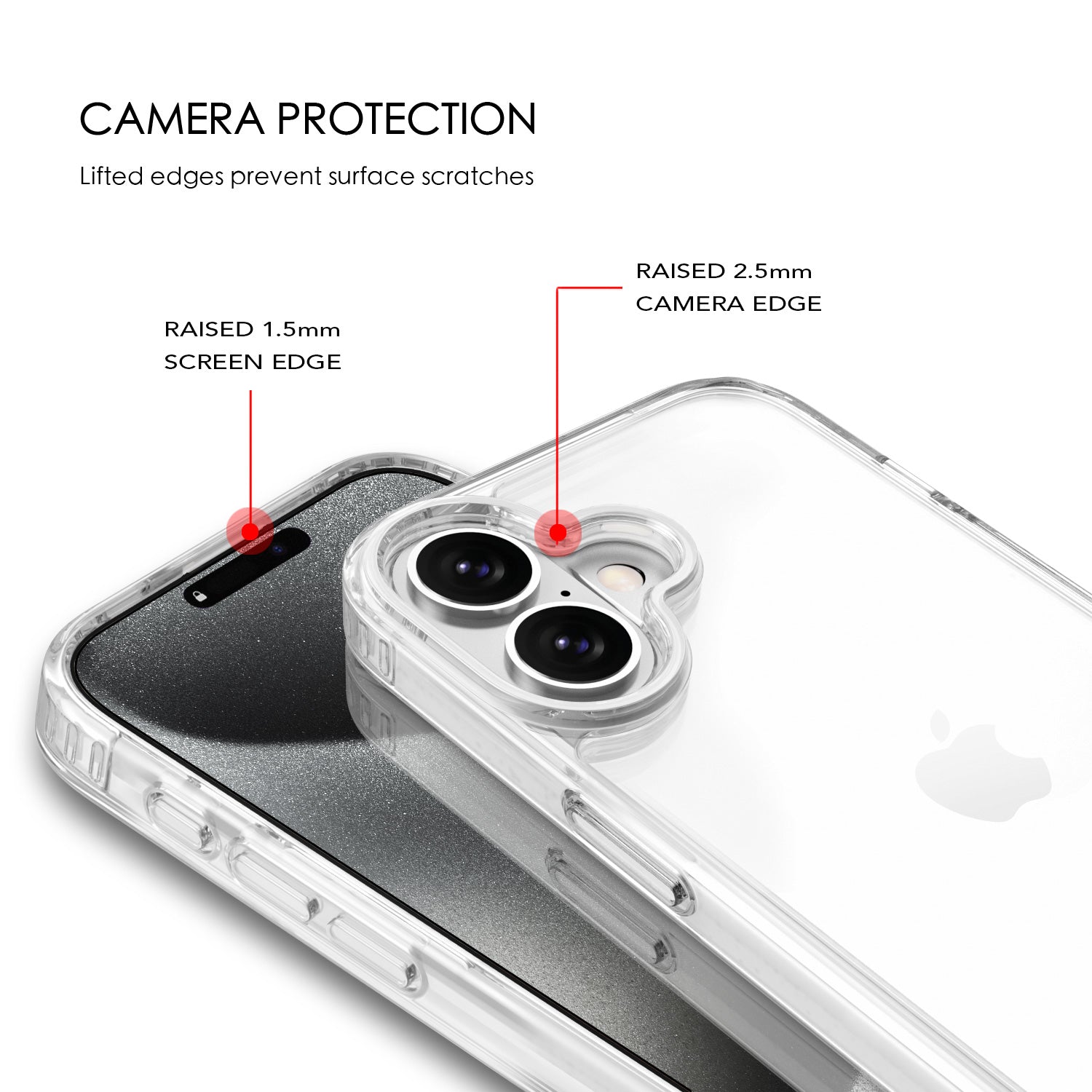 - 360° airbag technology and raised edges protect the screen and camera from scratches and reduce the impact of hitting hard surfaces.