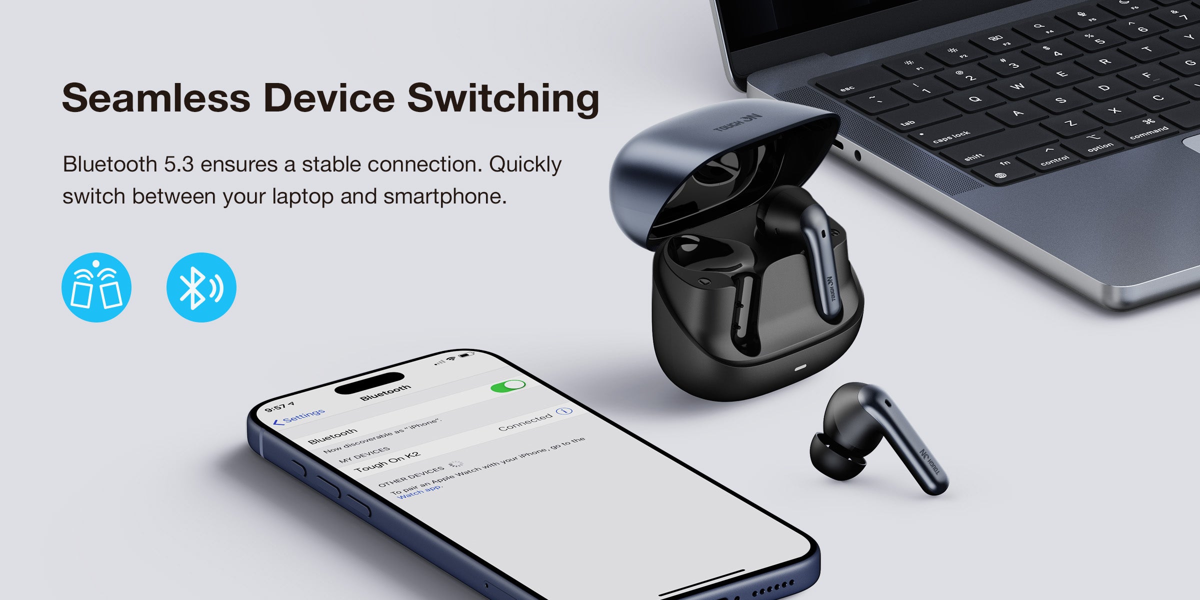 The K2 series features a premium electroplated charging case lid, providing a high-end metallic finish that is as durable as it is stylish.