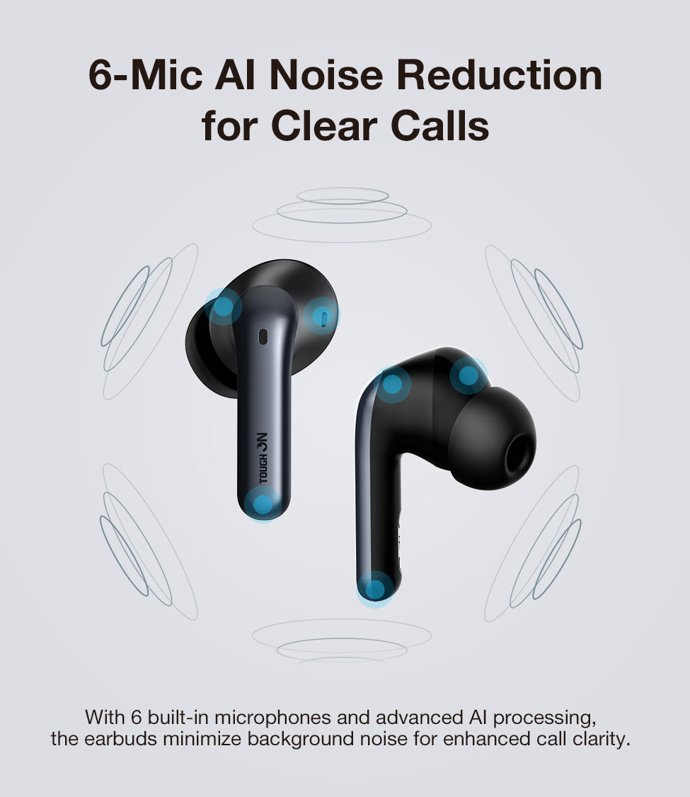 • 6-Mic AI ENC: Six specialized microphones filter out background chaos, ensuring your voice is crystal-clear, whether you're on a windy Melbourne street or a busy NYC subway.