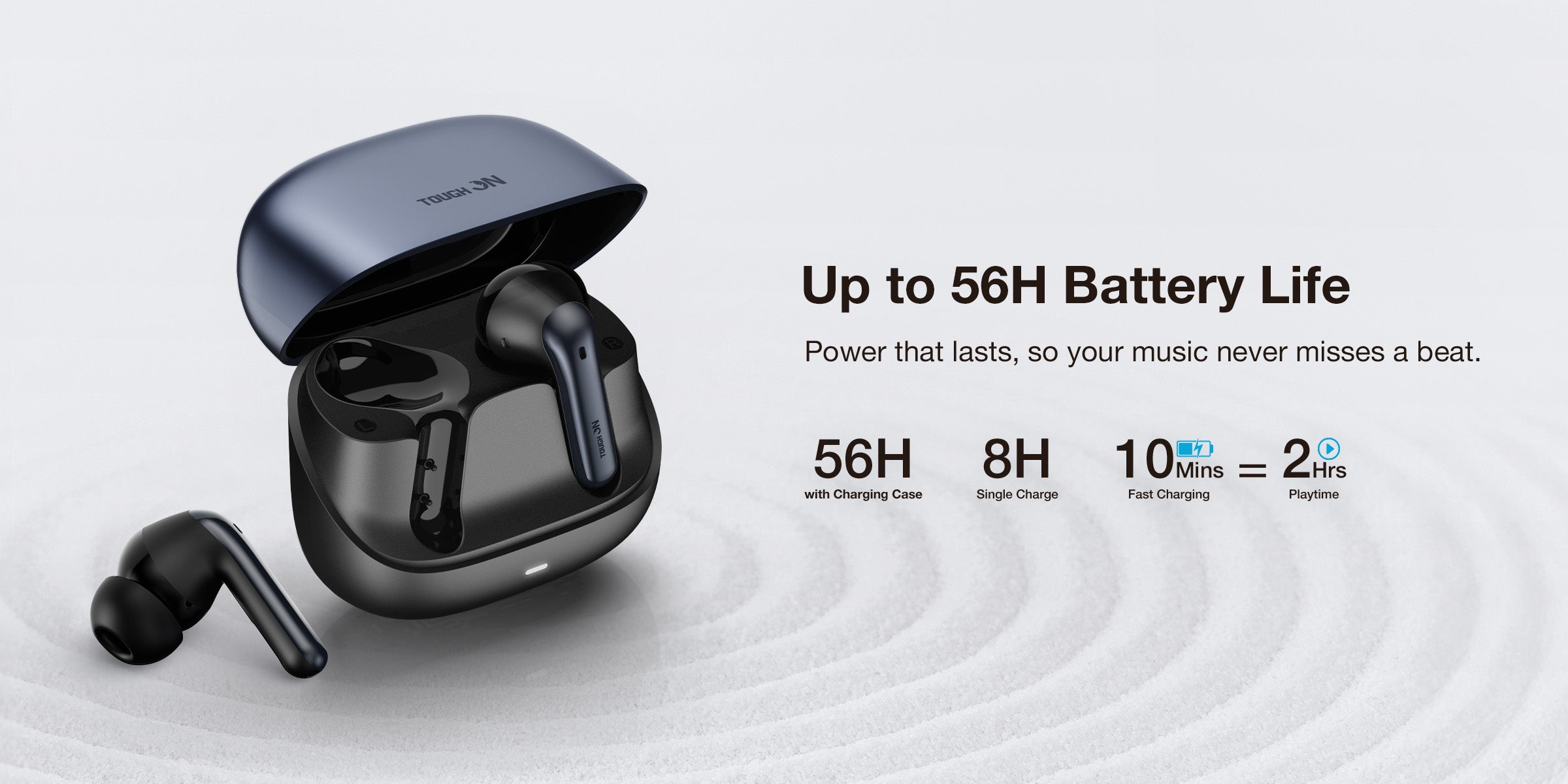 Battery Life 56 Hours Total (8h Buds / 48h Case)