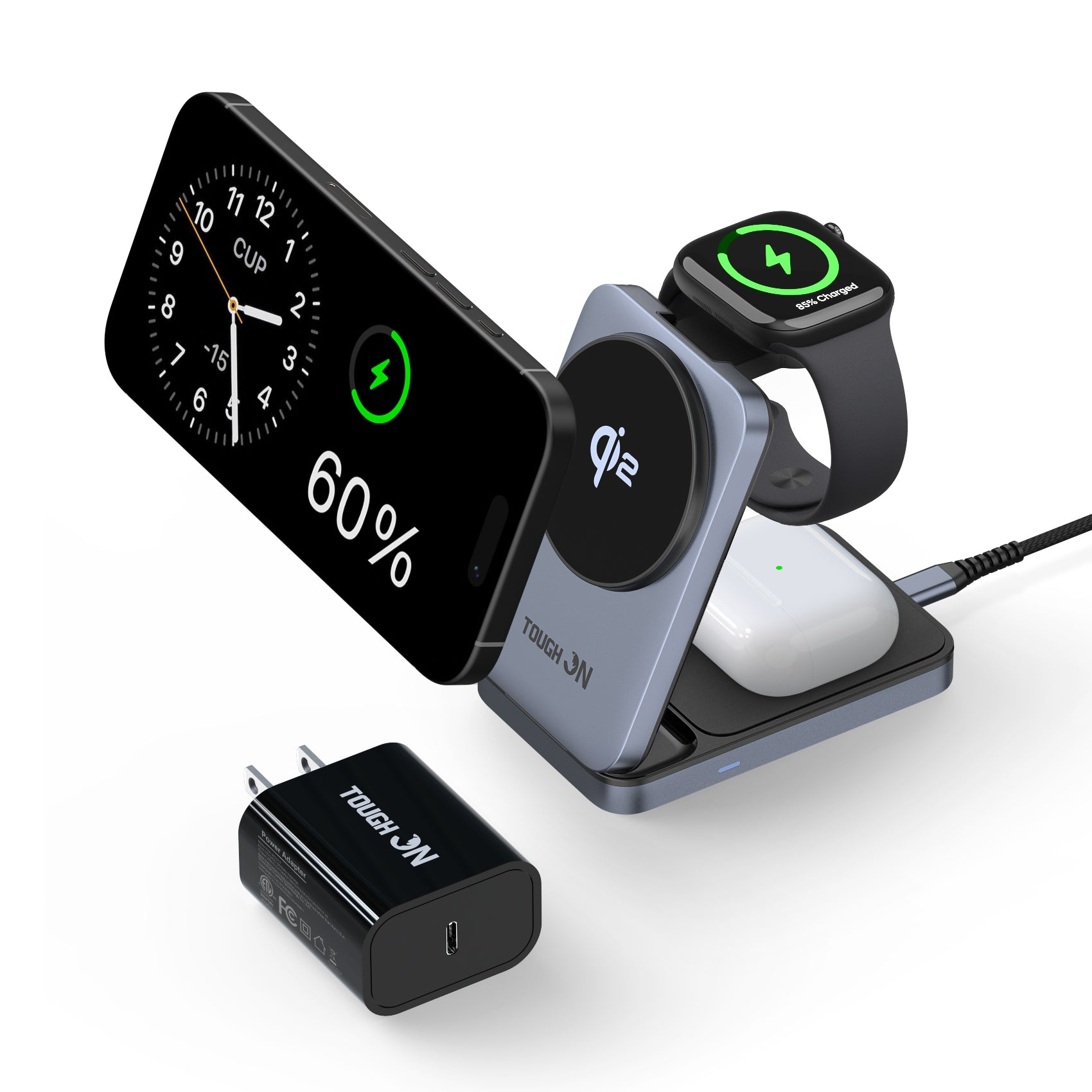 Tough On MagFold Qi2 3-in-1 Wireless Charger Foldable Compatible with MagSafe
