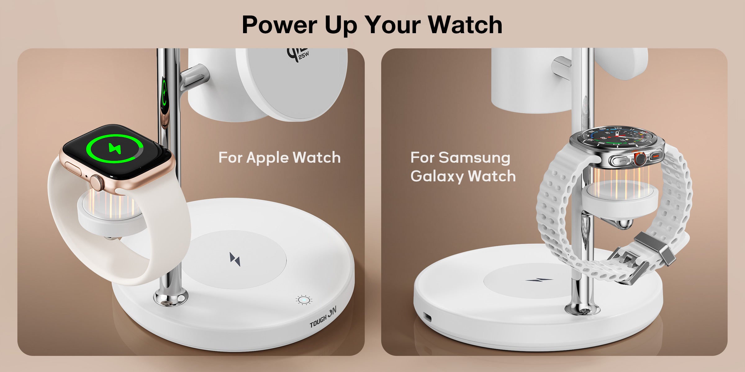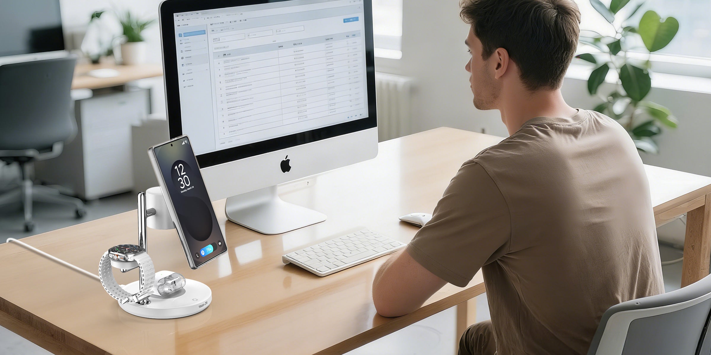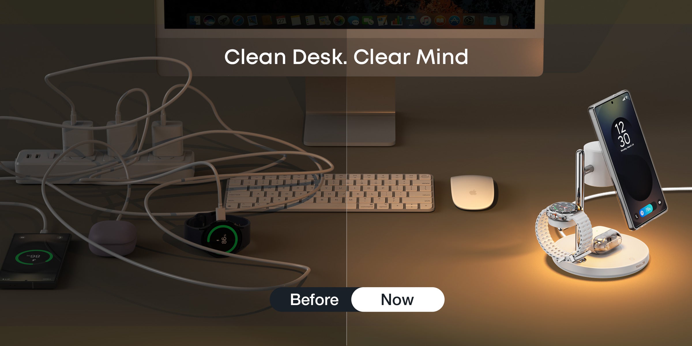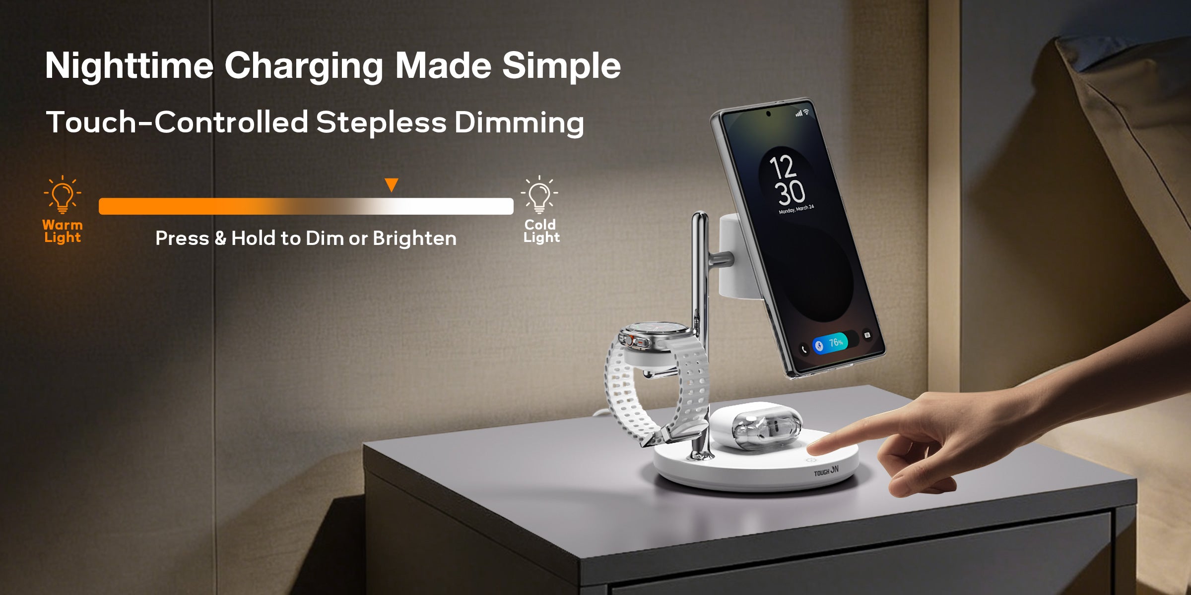 Keep your space tidy while charging all your everyday devices at once. The MagMore 4-in-1 Wireless Charger delivers up to 25W fast charging and includes a built-in nightlight, making it ideal for your desk, bedside table, or home office.