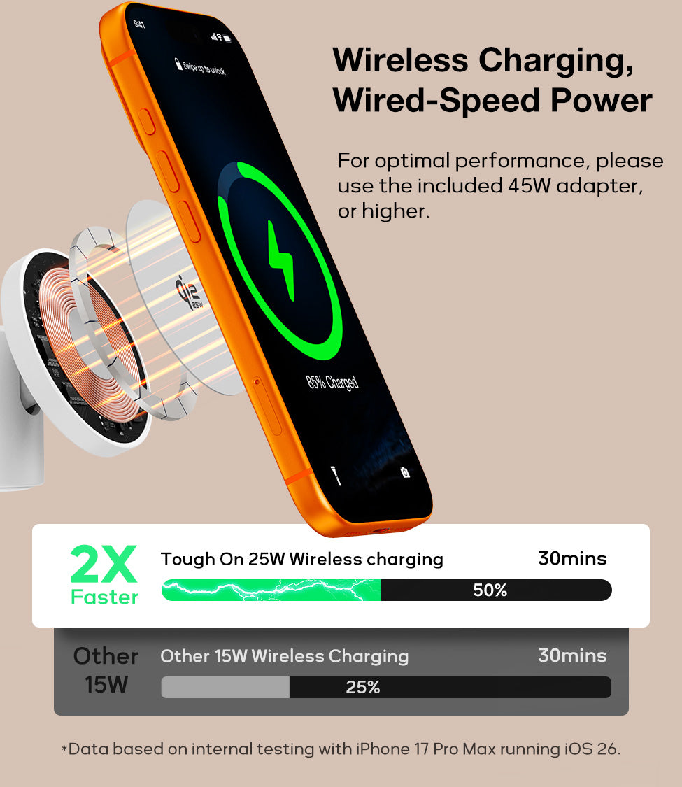 Charge your phone quickly and efficiently with up to 25W wireless output. Whether you are topping up during the day or charging overnight, MagMore delivers stable, reliable power without the clutter of multiple cables.