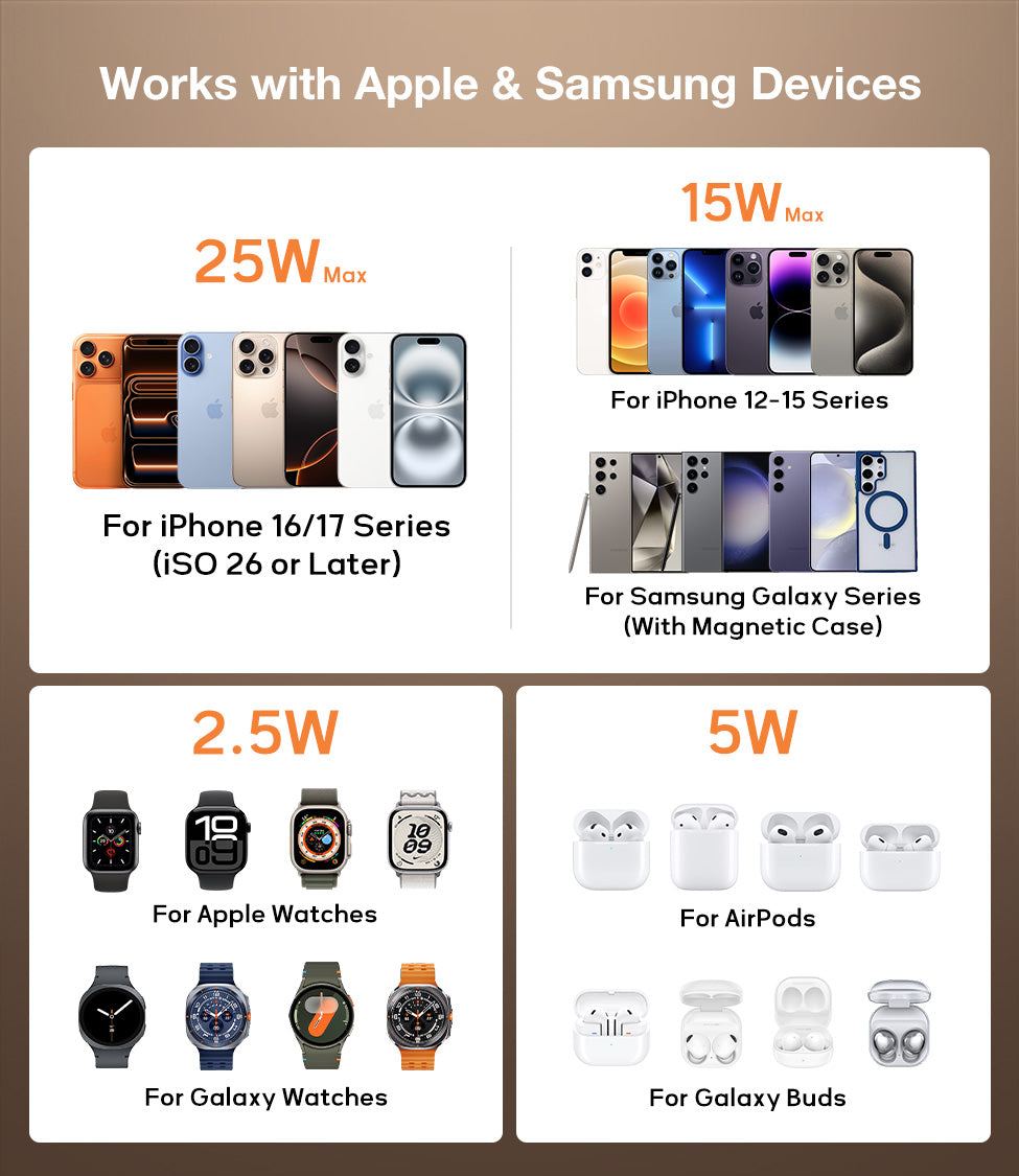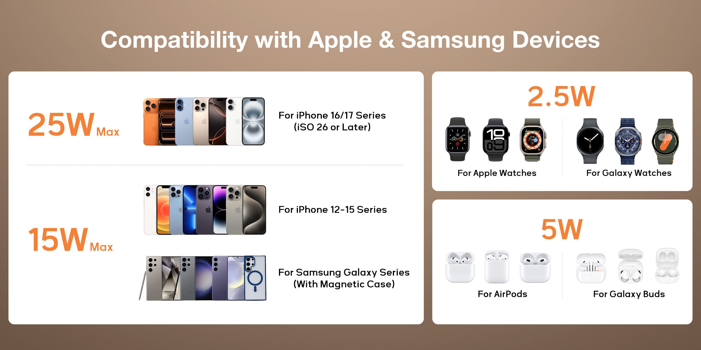 MagMore is designed to work seamlessly with both Apple and Samsung ecosystems, including: