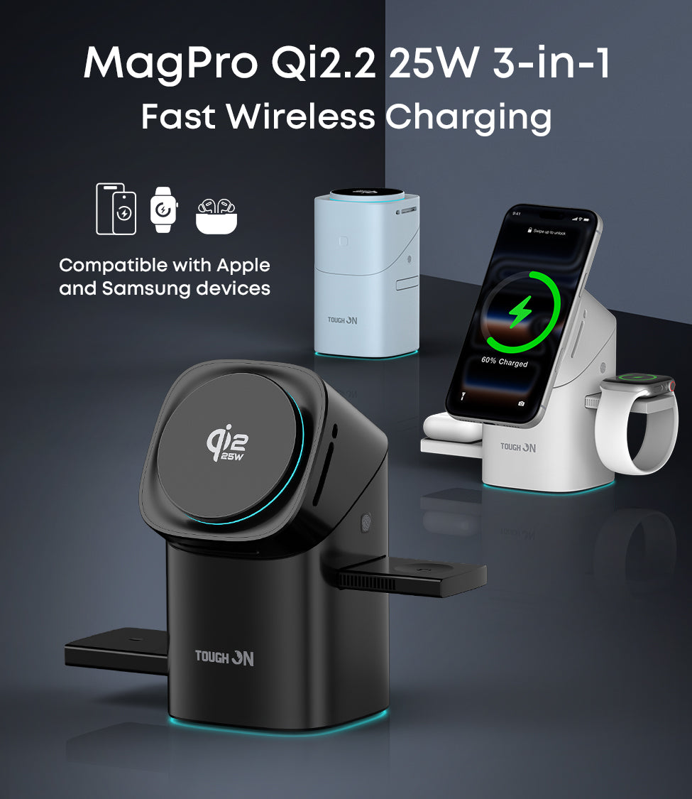 - Tough On MagPro Qi2.2 25W 3-in-1 Wireless Charging Station