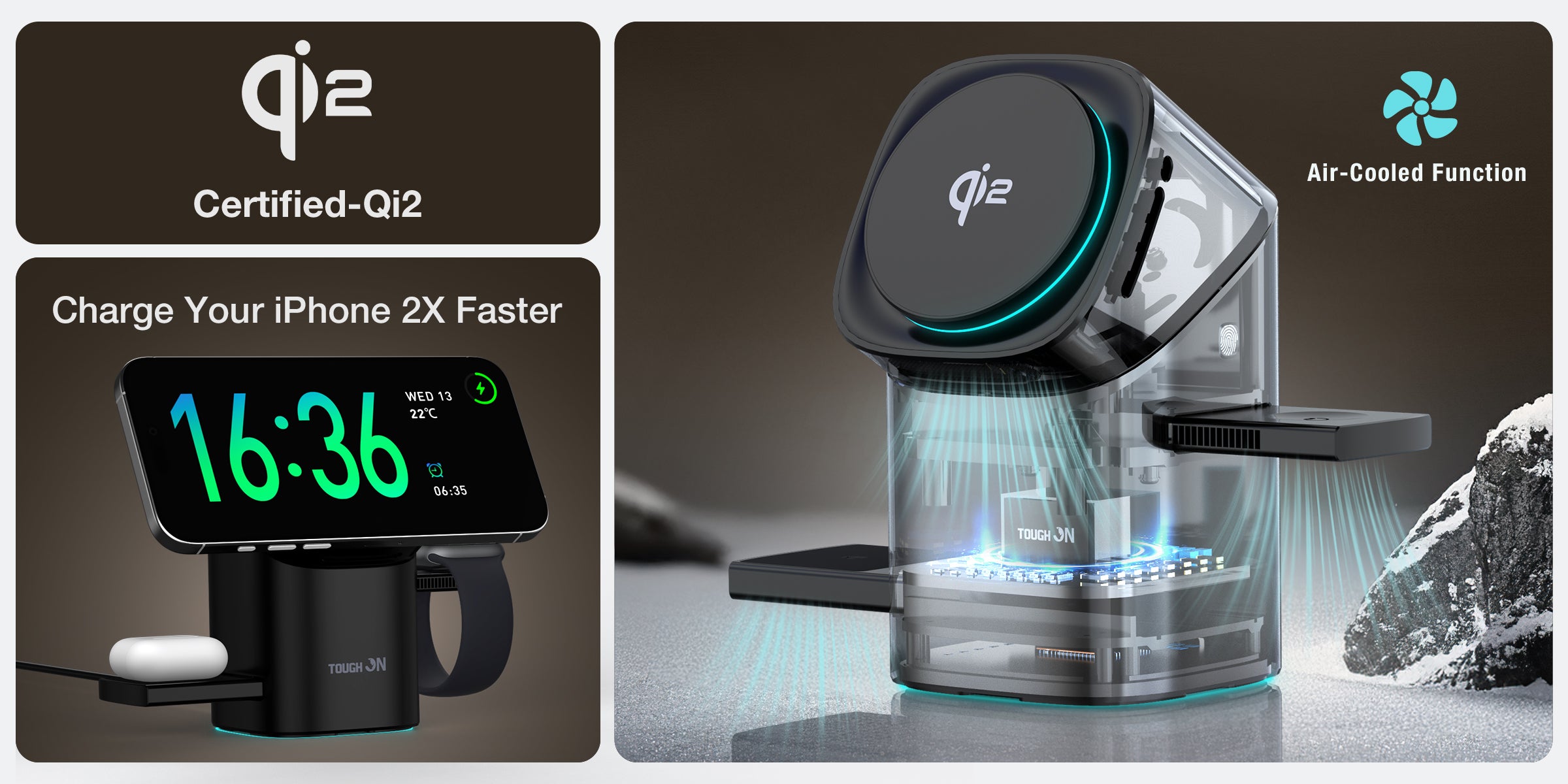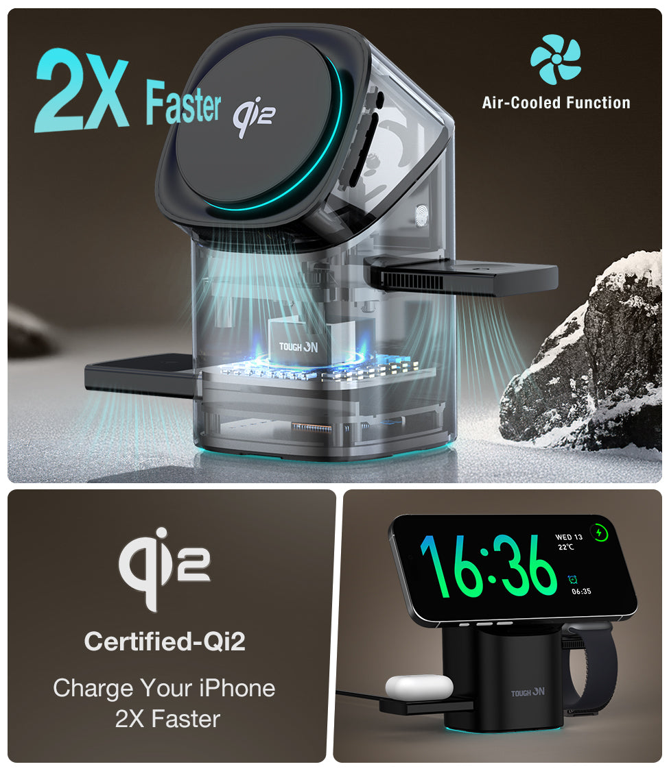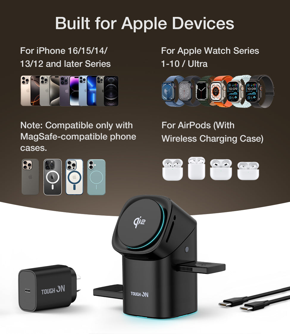Tough On MagPro Qi2 3-in-1 Wireless Charger for Apple iPhone Watch AirPods