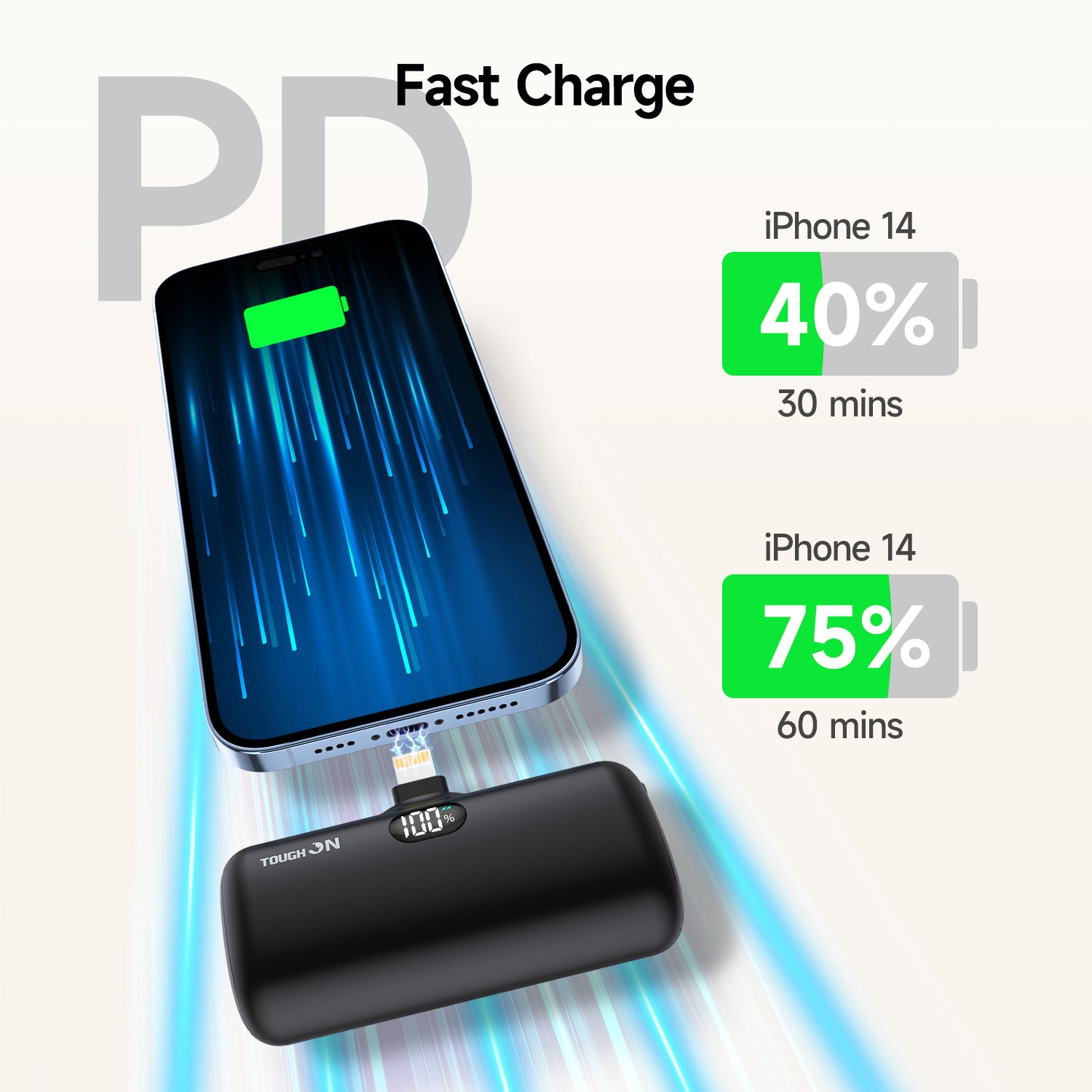 Tough On Mini Portable Charger 5000mAh Power Bank PD Fast Charging for iPhone