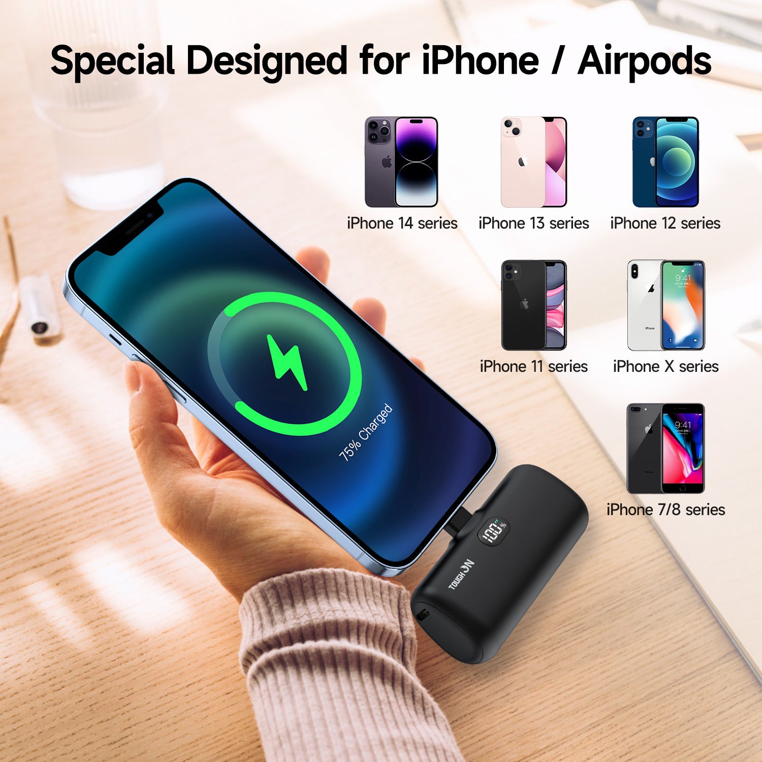 Just plug in your iPhone and start charging, plug and play, no need to use an additional charging cable. The digital LED display will show the current battery level to remind you to charge your portable battery charger, and it has a user-friendly design.