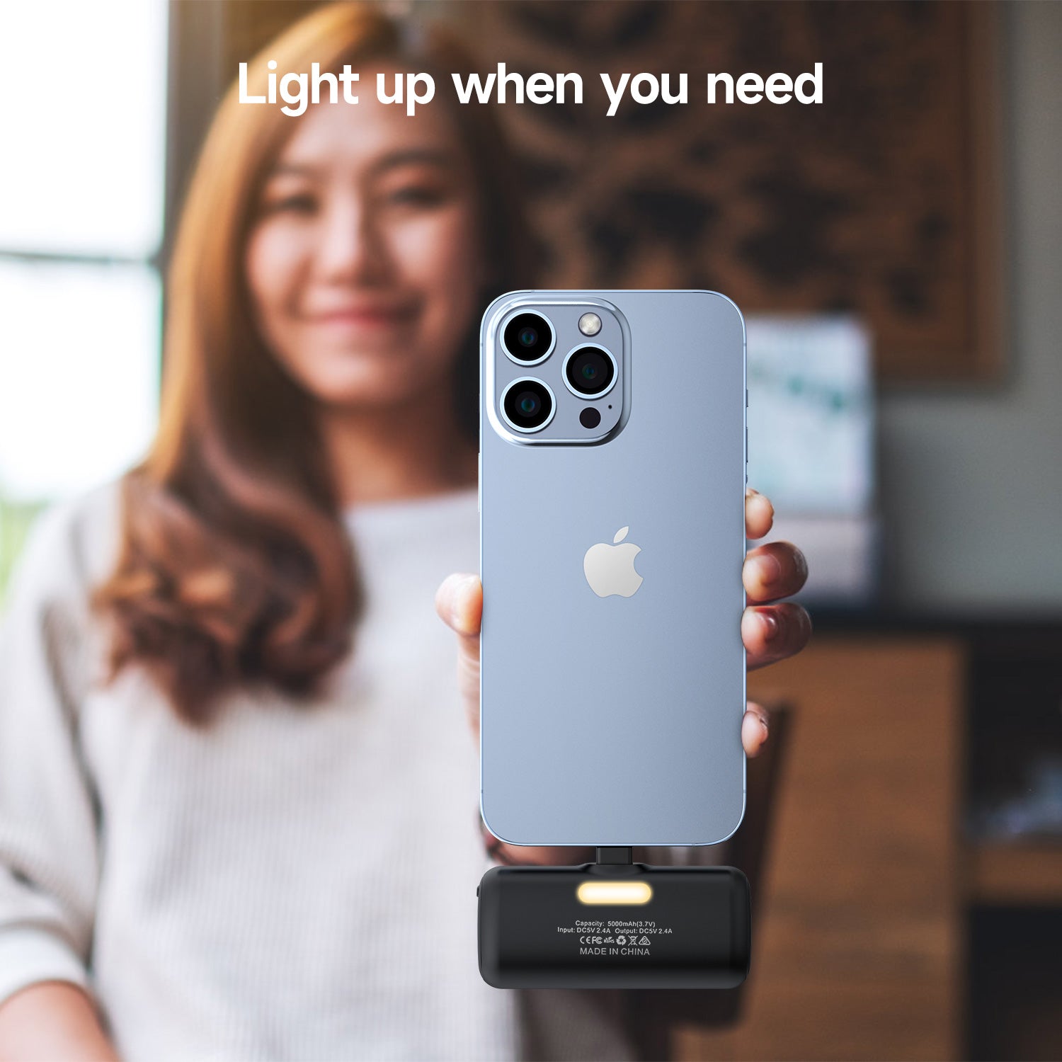 The portable battery charger has an LED lantern that can be switched to 3 colors of warm white. You can use it as a fill light for selfies and a flashlight in the dark. In addition, the SOS flashing mode is designed for emergencies, you can clearly send out a distress signal to get rescue in the case of distress.