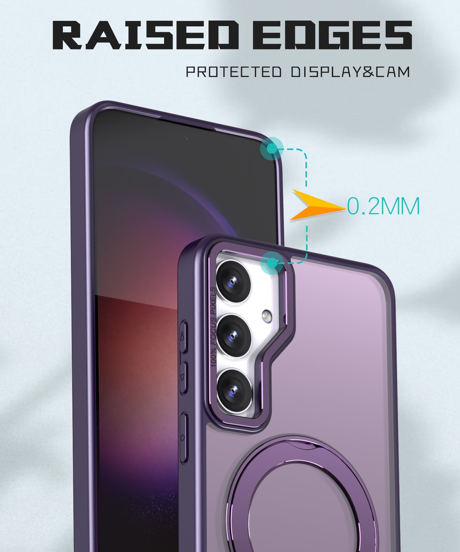 - 360° Rotatable magnetic ring kickstand. You can adjust the kickstand to prop up your phone at the perfect angle on any flat surface, whether you're watching videos or reading.