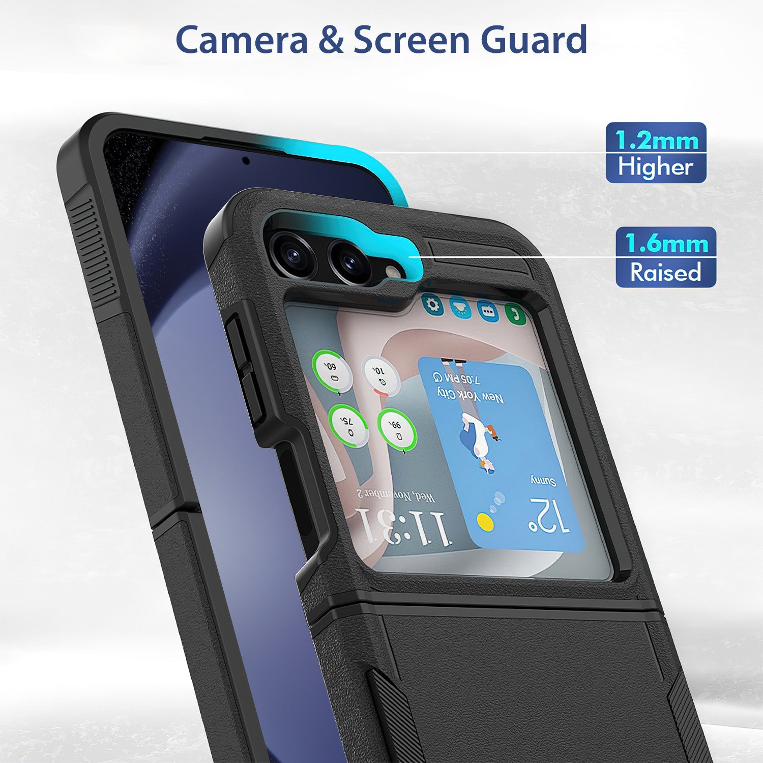 - Camera and screen Protection: The cover's raised lips protect your camera lens, raised lip to relieve impact, and protect your screen against drops & cracks & surface scratches.