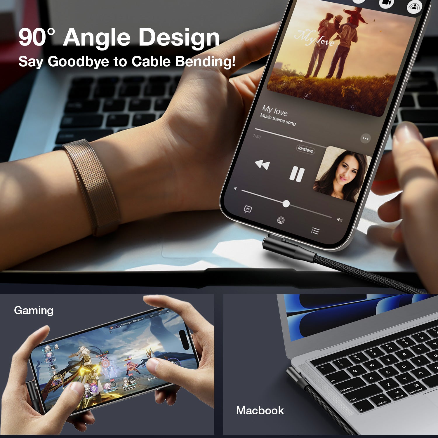 - Robust Construction: Crafted with a sturdy right-angle design and lengths: of 6.6 feet (2 meters) , durable nylon exterior, and bulletproof fiber core, ensuring it withstands up to 10,000+ bends for long-lasting durability and flexibility in everyday use.