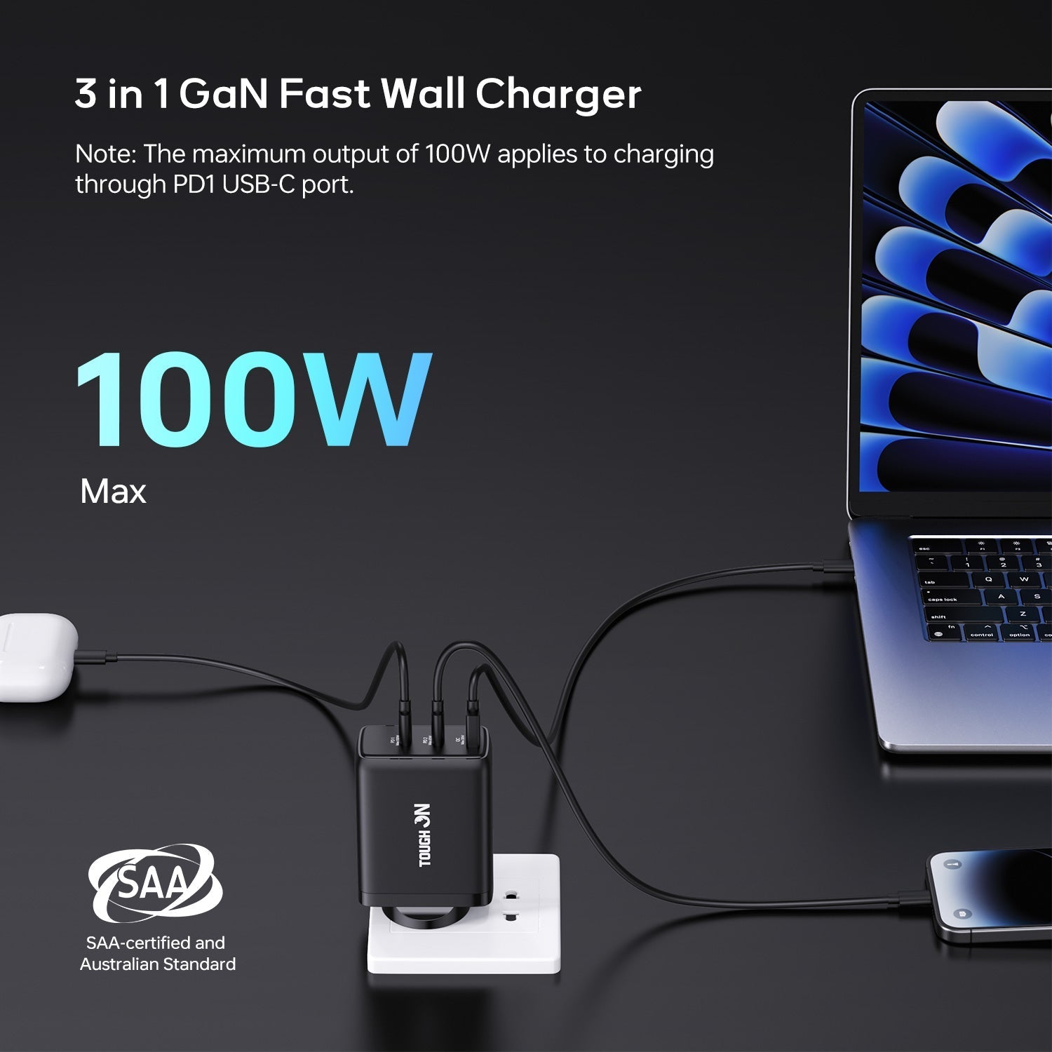 Tough On Wall Charger (100W, AU) and Charging Cable Bundle