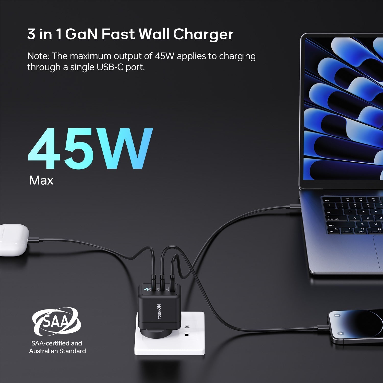 Tough On Wall Charger (45W, AU)) and Charging Cable Bundle
